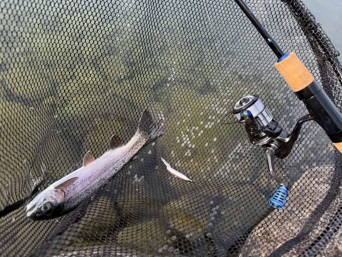 放流は頻繁に行っているので魚影は濃く魚の反応は良く、何を投げても良く釣れました。