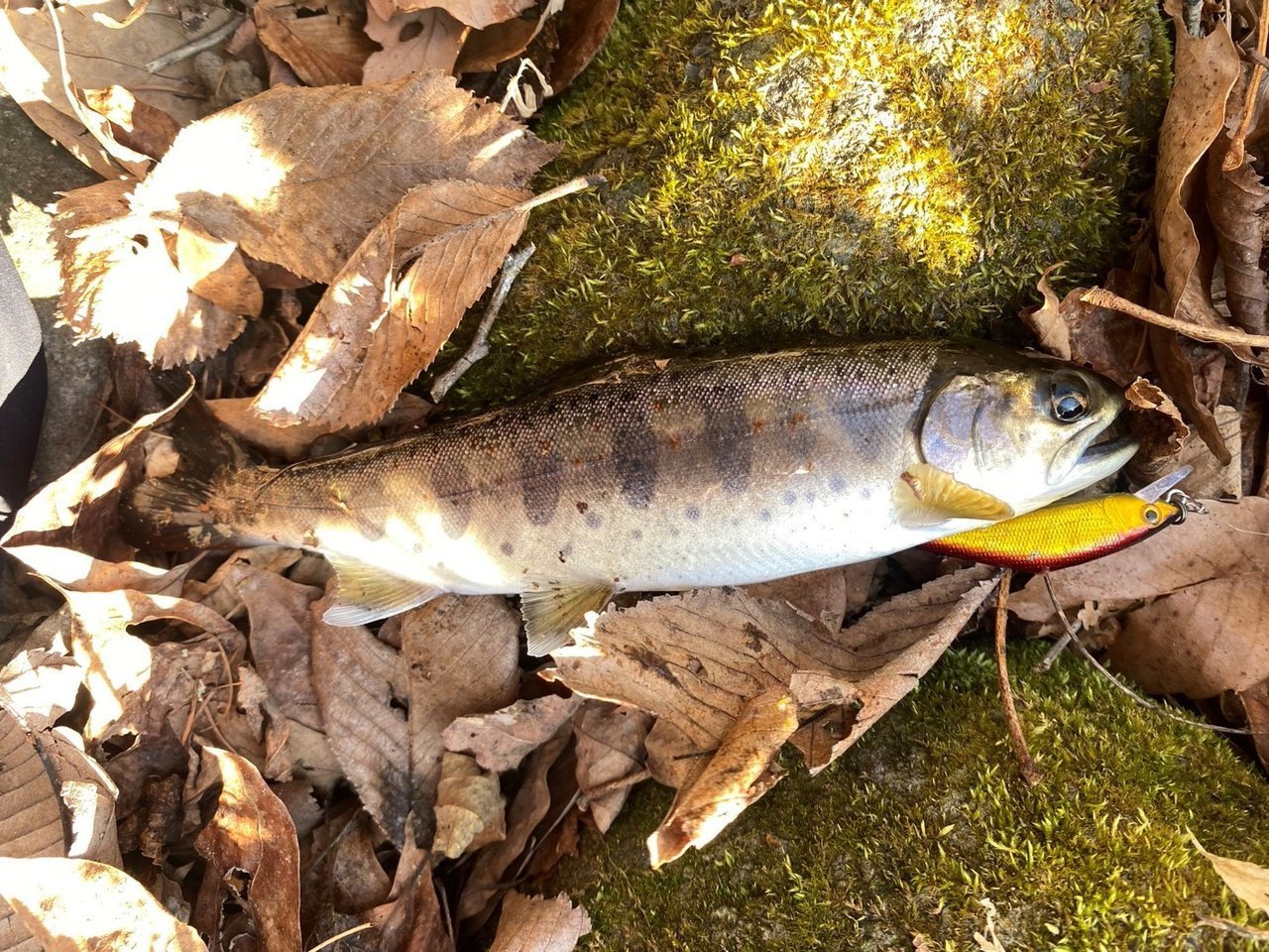 ルアーローテーションしながら釣り上がっていくと何度かチェイスするアマゴらしいのが、いくつかいたそうです。