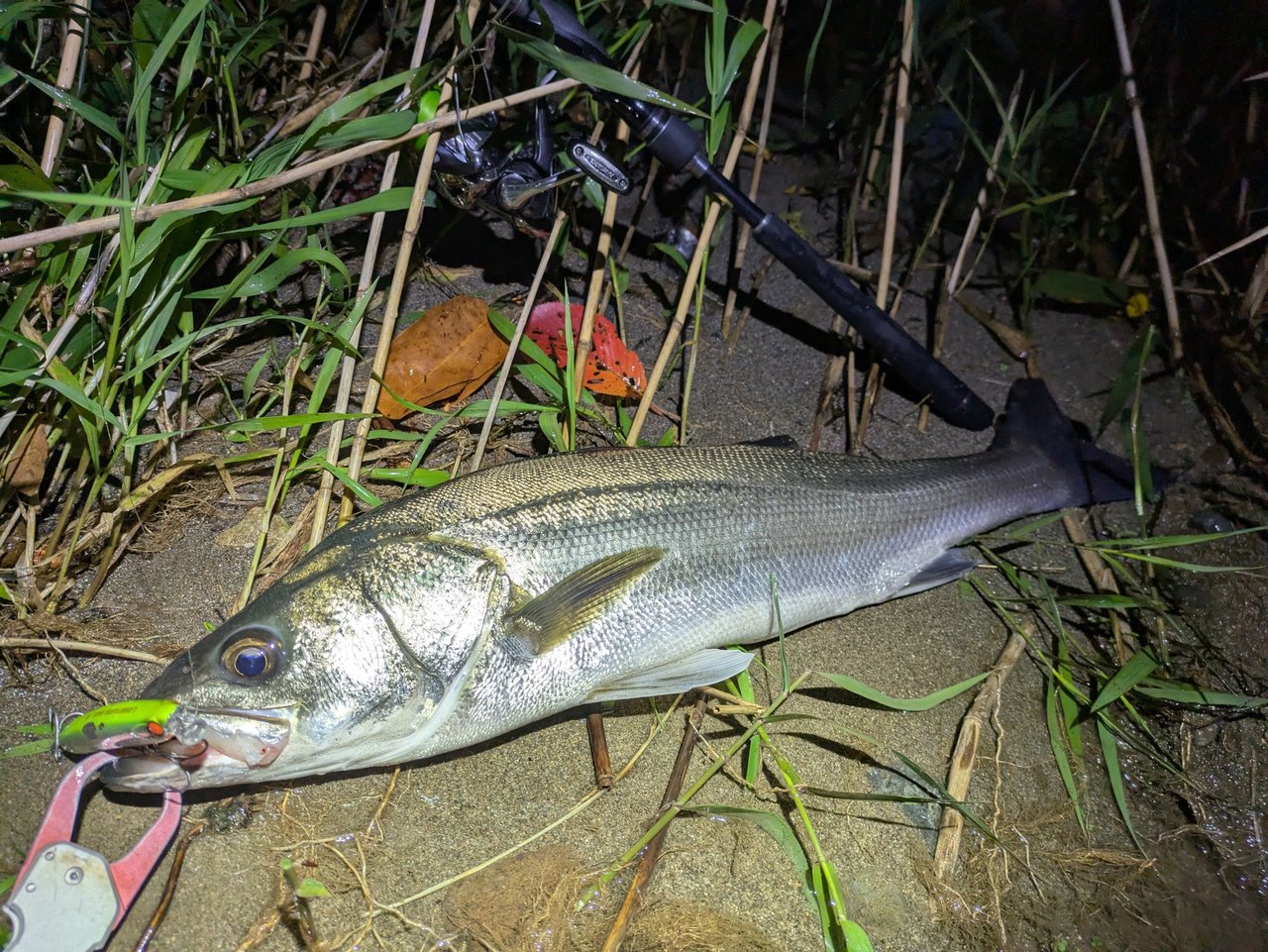 スタッフ山田です。 仕事終わりに梯川へ。 昨日いたベイトの姿はなく、昼間に降った雨で少し流れはありましたが あまりいい感じではないなあと思いながらキャスト。 まだシーバスくんのお食事タイムではない!と次のポイントへ。 1投目で、もあっとしたアタリで釣れてくれました。 その後、ルアーを変え投げましたが何の反応もなく。。。 タイミングですね!