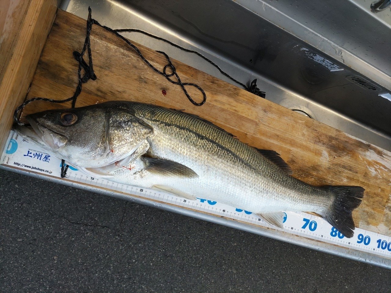 お客様よりランカーシーバスの釣果報告を頂きました!朝3時から投げ続け夜明け頃にヒット!見事88cmのランカーシーバスゲット!ヒットルアーはコアマンVJ!よく釣れるルアーですね♪ 周りでも同サイズが数本上がっていたそうです! ご報告有難うございます!