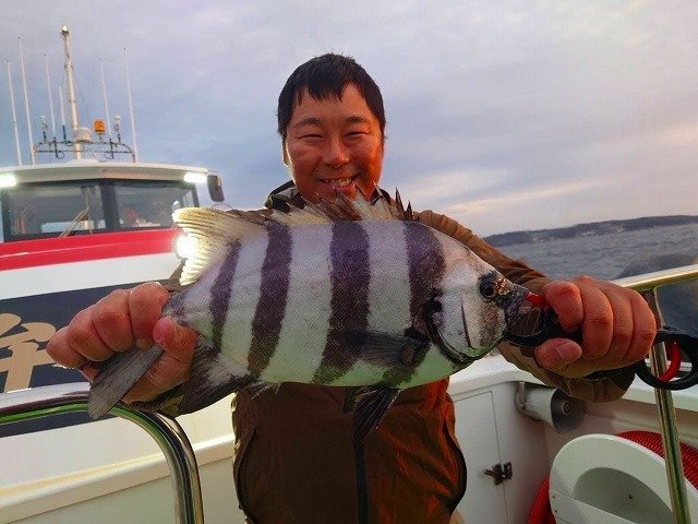 こんにちは、スタッフ小林です! ご常連様のS様よりグッドスマイルなナイスな釣果情報をいただきました!金沢八景の弁天屋さんより10月より潮回りで始まりました東京湾テンヤマダイにて、何と良型のイシダイをゲットされたそうです!お見事ですw魚も素晴らしいですが、最高の笑顔で今シーズンも一つテンヤを楽しんでるのが伝わってきます!楽しそうなんで私も行きたくなっちゃいました(笑)また、楽しい釣果情報お待ちしておりまーす。