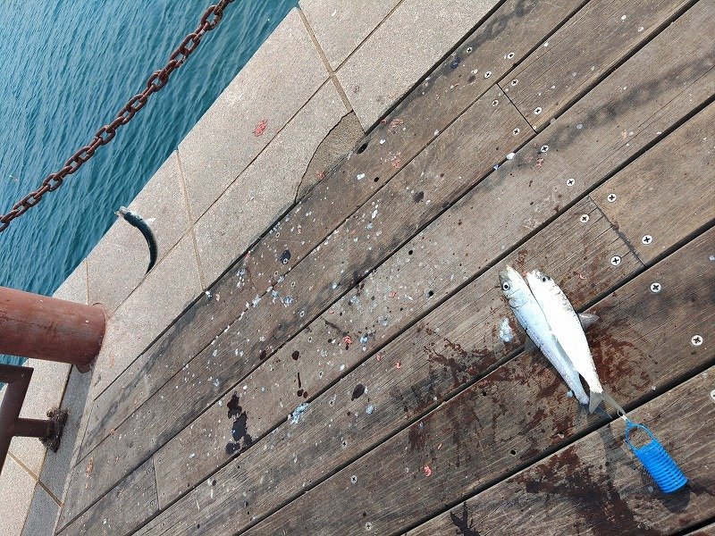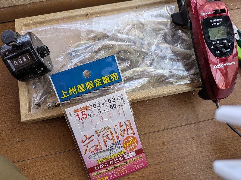 途中、周囲の釣果を見に行ったりトイレで席を外したりしたので実際に釣りをしていたのは40分ほど。