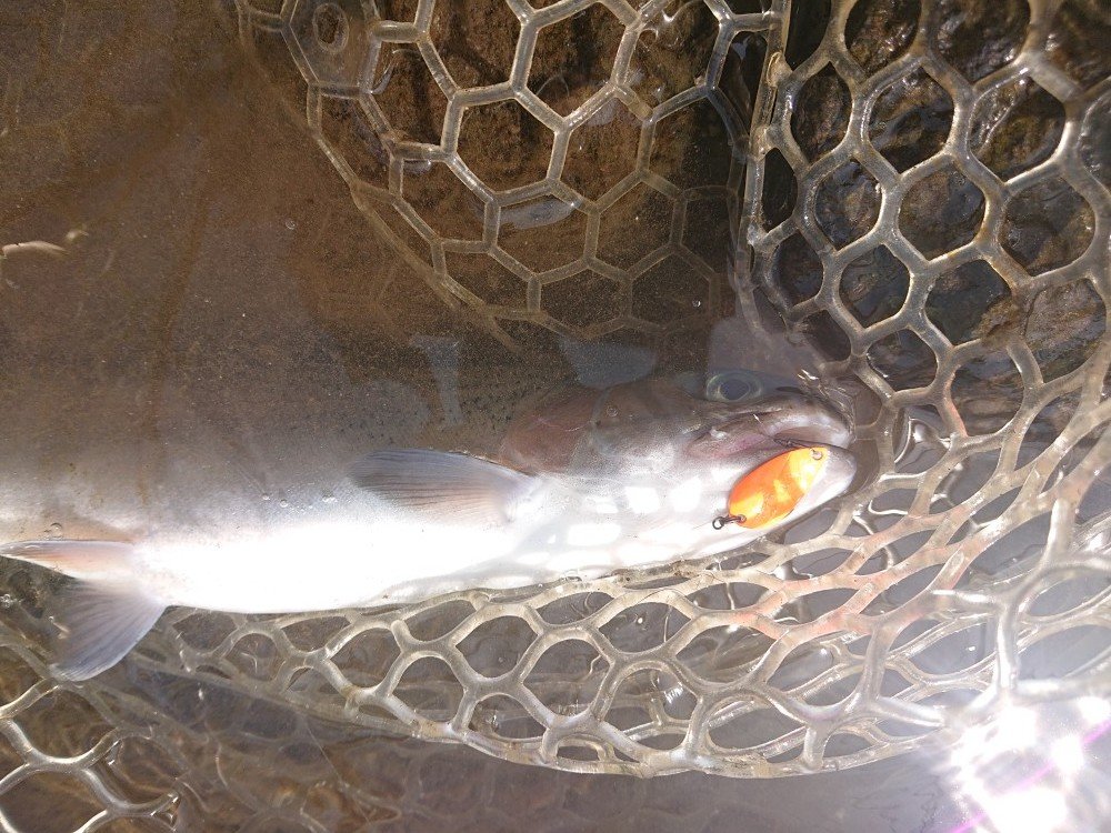 朝はミノーやスプーンでまずまず釣れますが、日が高くなるにつれて渋々・・・