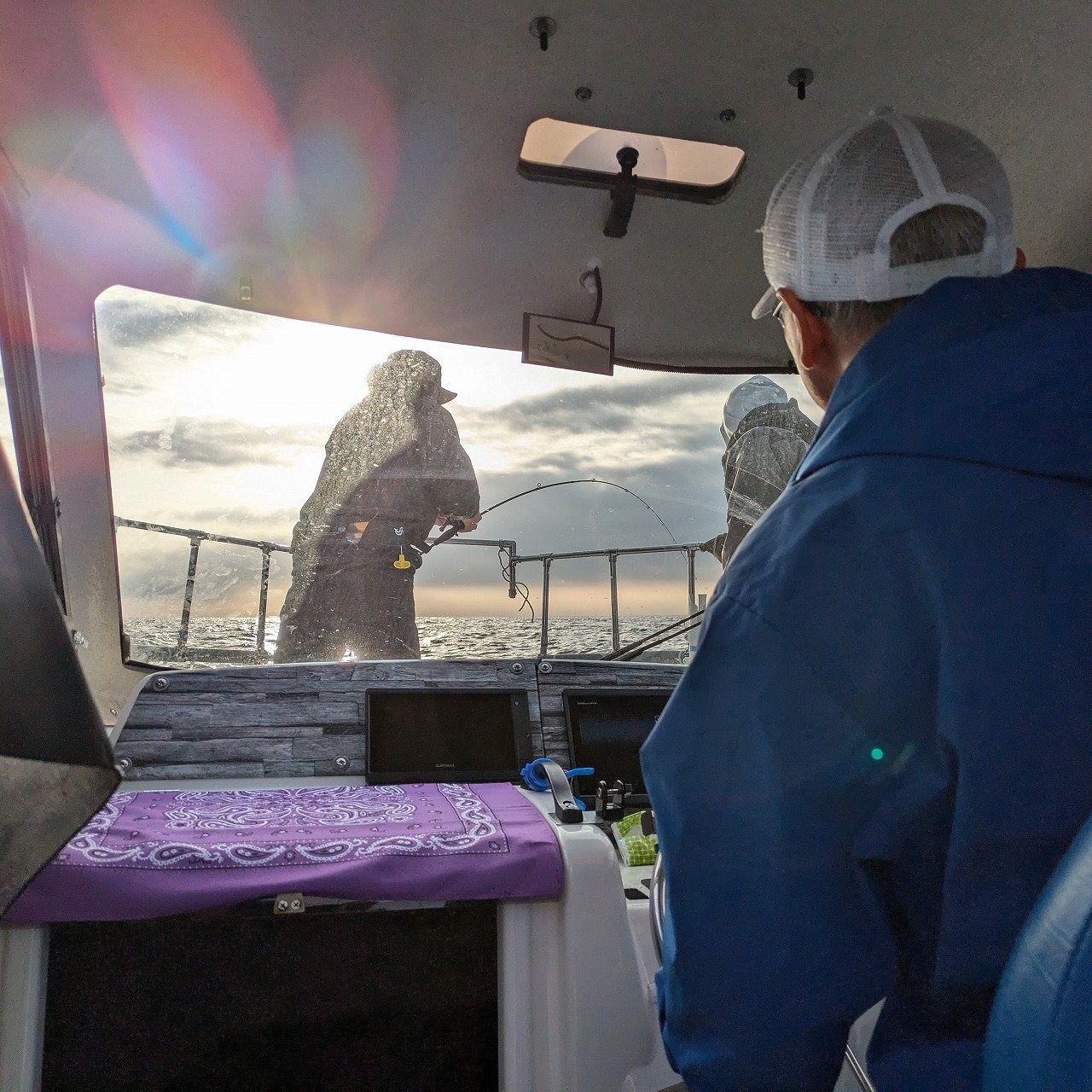 前日の強風が嘘の様に海は凪状態。2時に集合し、ジャンケンで座席を決め準備を済ませた後出船します。
