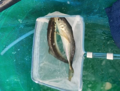 これはウキがスッ~って入ったのがわかって引きを十分に味わってタモに無事取り込み