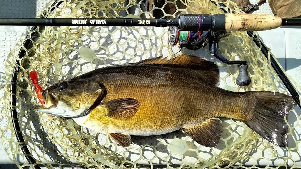 ■ロッド:6.7フィートのMH ■リール:スコーピオンMD201XG ■ライン:アザヤカ16ポンド ■ルアー:ドライブクロー4”(直リグ3.5g)