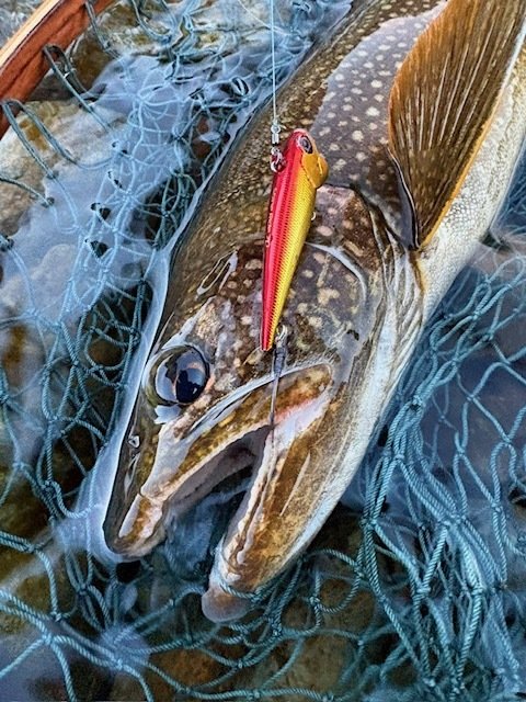まだまだ活発にルアーを追う水温ではない為、クロス~ダウンクロスがメインの釣り方となります。水流の強さにスプーンを合わせてじっくり見せるパターンが好調。堰堤下のポイントでは、ミノーの移動距離を抑えたタテのトゥイッチが効きました。