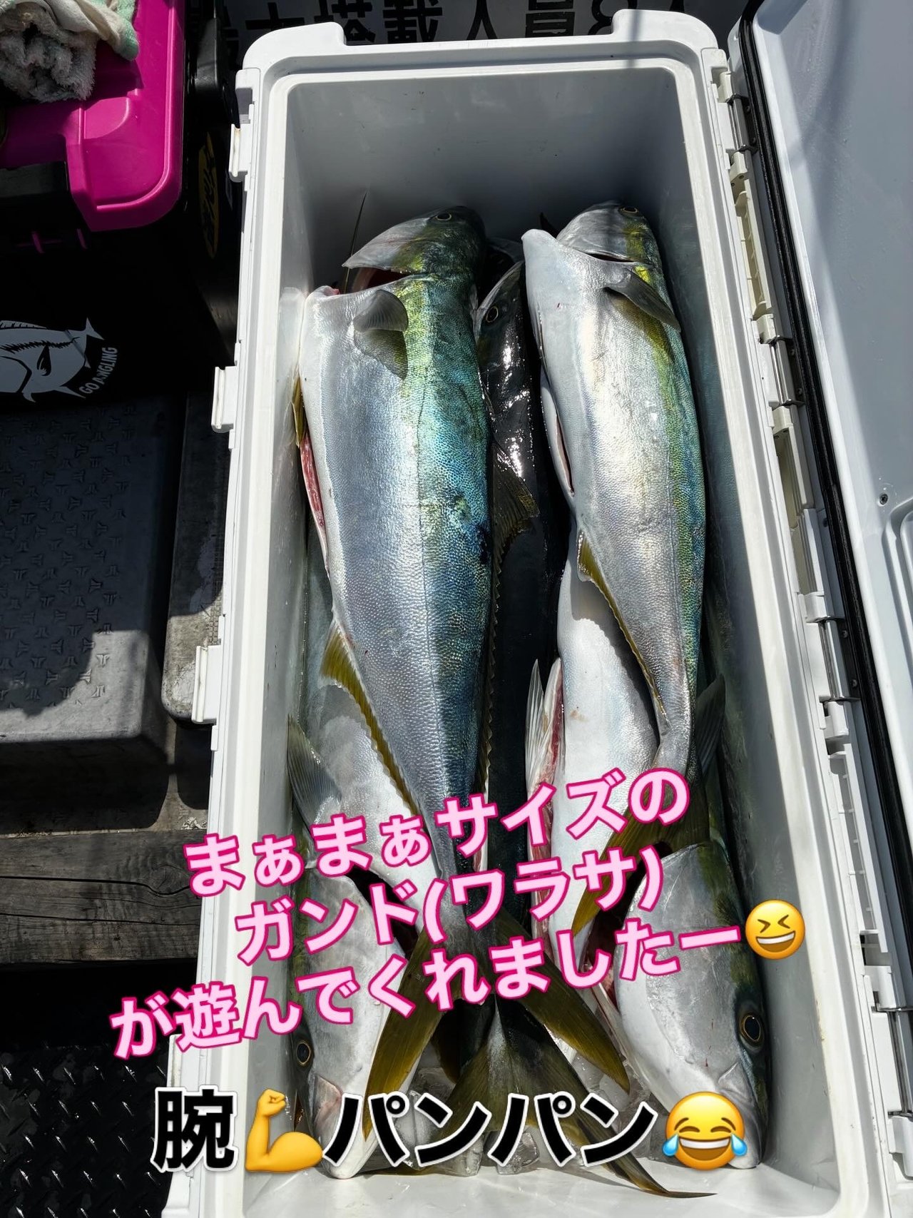 時化で殆ど出船してない日が続き、出船するかも分からない状況で、何とか出船出来てガンドサイズ(ワラサ)が遊んでくれましたー😆