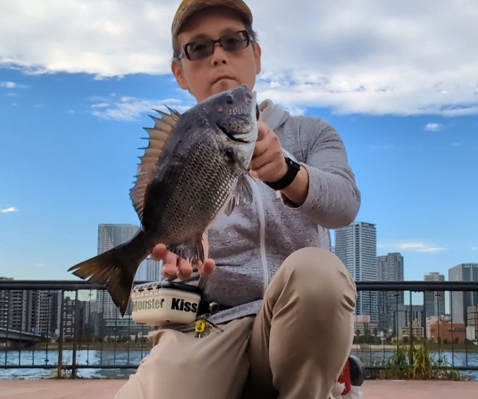 それでも何度目かのアタリをものにし大体2ヶ月ぶりの黒鯛の引きは格別。
