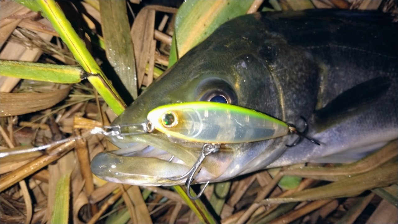 ポイントへ着くと増水&水量が強まっていて下のレンジを探るのが難しい状況。しかしながらのんびりしてると明るくなってしまうのでとにかく前回も反応のあったコアマン「アルカリシャッド」をチョイス。明暗の際に打ち込んで沈めてみると弱々しいアタリと共に糸が止まったので合わせると69cmの11月初シーバスをキャッチする事ができました!その後は明るくなり反応もなくなったので40分程の釣行で納竿終了。