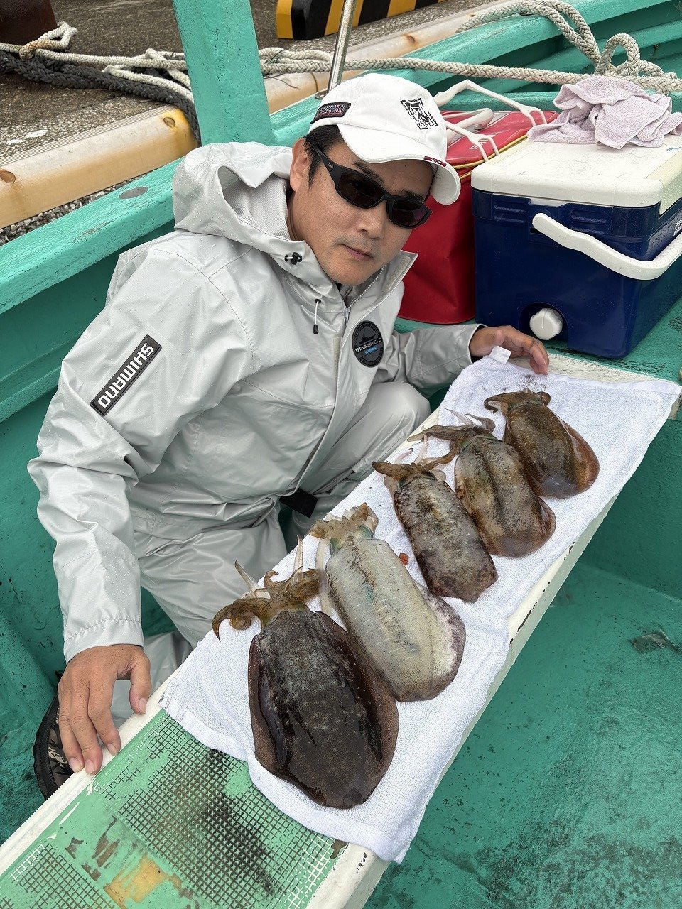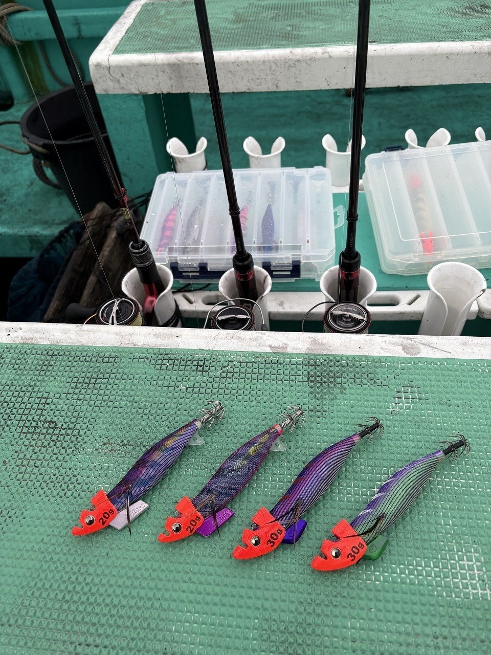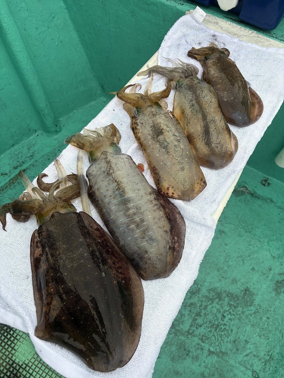 当日はやや風が強かった為、エギ単体30g前後にプラスシンカー20~30gのセッティングが吉と出て、終日ポツポツと本命アオリイカが乗りました。