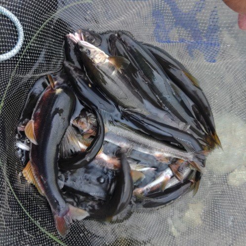 10/31日、冨士川にて尺鮎を仕留めました!釣った直後は白いオスでしたが、「これは尺有る!」とタモ入れして眺めた後、逃がさないよう両手で引船に仕舞っちゃいましたwこの時期のアユはオトリ缶や船に入れておくと真っ黒にサビてしまいますね。それでも鮎釣りやってて始めて釣った尺鮎なのでちょっと舞い上がっています。場所場所で丁寧に泳がせるとカツンと当たるのですがウロコが固くケラレ多発でしたがその都度針を交換し、終わってみれば27匹と数も型も釣れた最高の最終回でした!!