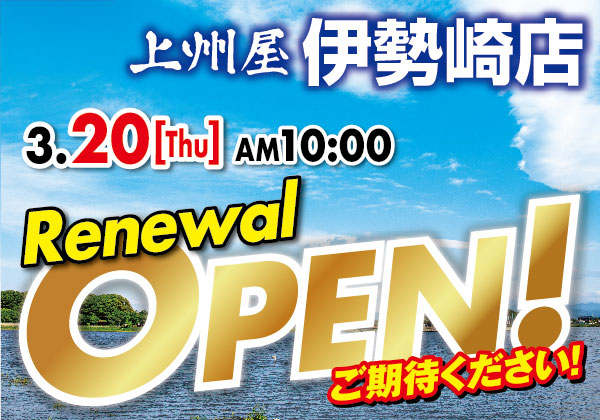 2025年3月20日(木・祝)上州屋伊勢崎店がリニューアルオープンしました!