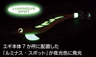 音と光でイカを誘う!エギ本体各所に設定した「ルミナススポット」と軽快な「ラトルサウンド」で獲物を狙います!