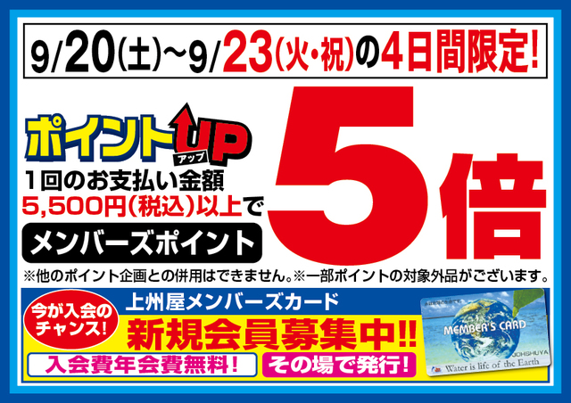 9/20(土)~11/3(月・祝)上州屋いわき泉店にてOPEN1周年セール開催!