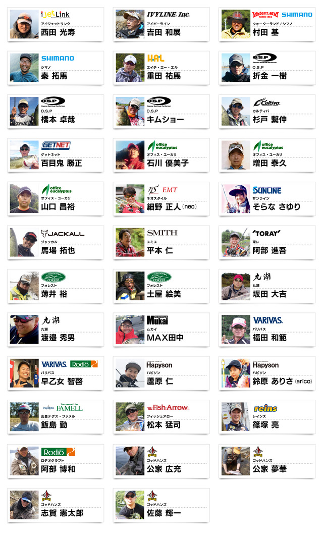 ※敬称略、順不同※上記ゲストアングラー情報は本ページ更新日時時点の情報となります。ゲストアングラーの来場およびイベント内容は変更を伴う場合がございますので予めご了承下さい。