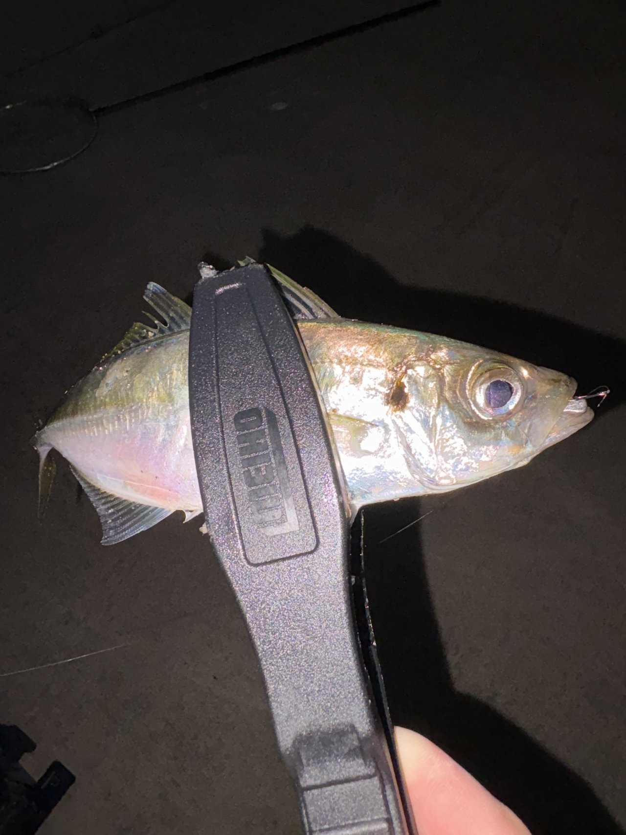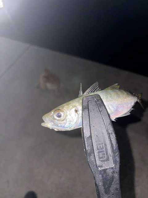 夜はアジング!最初こそ渋かったものの集魚灯を付けてもらっていたのでパタパタ釣れていましたが自分はアジが1匹とヨロイメバルが1匹泣