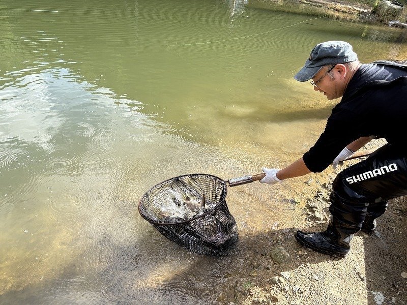 釣りの前にイワナのオスメスの選別作業を見学させてもらいました♪