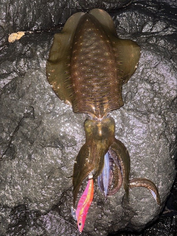 今年は晩秋のモンスターサイズがいつ釣れてもおかしくないシーズンですので釣行に行かれる際はタモやイカギャフを持参しましょう。