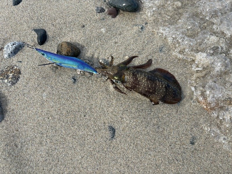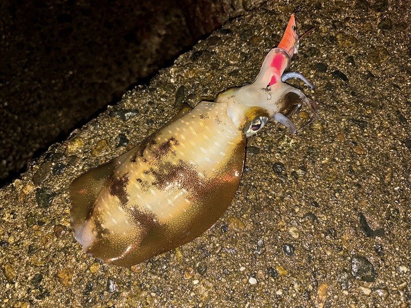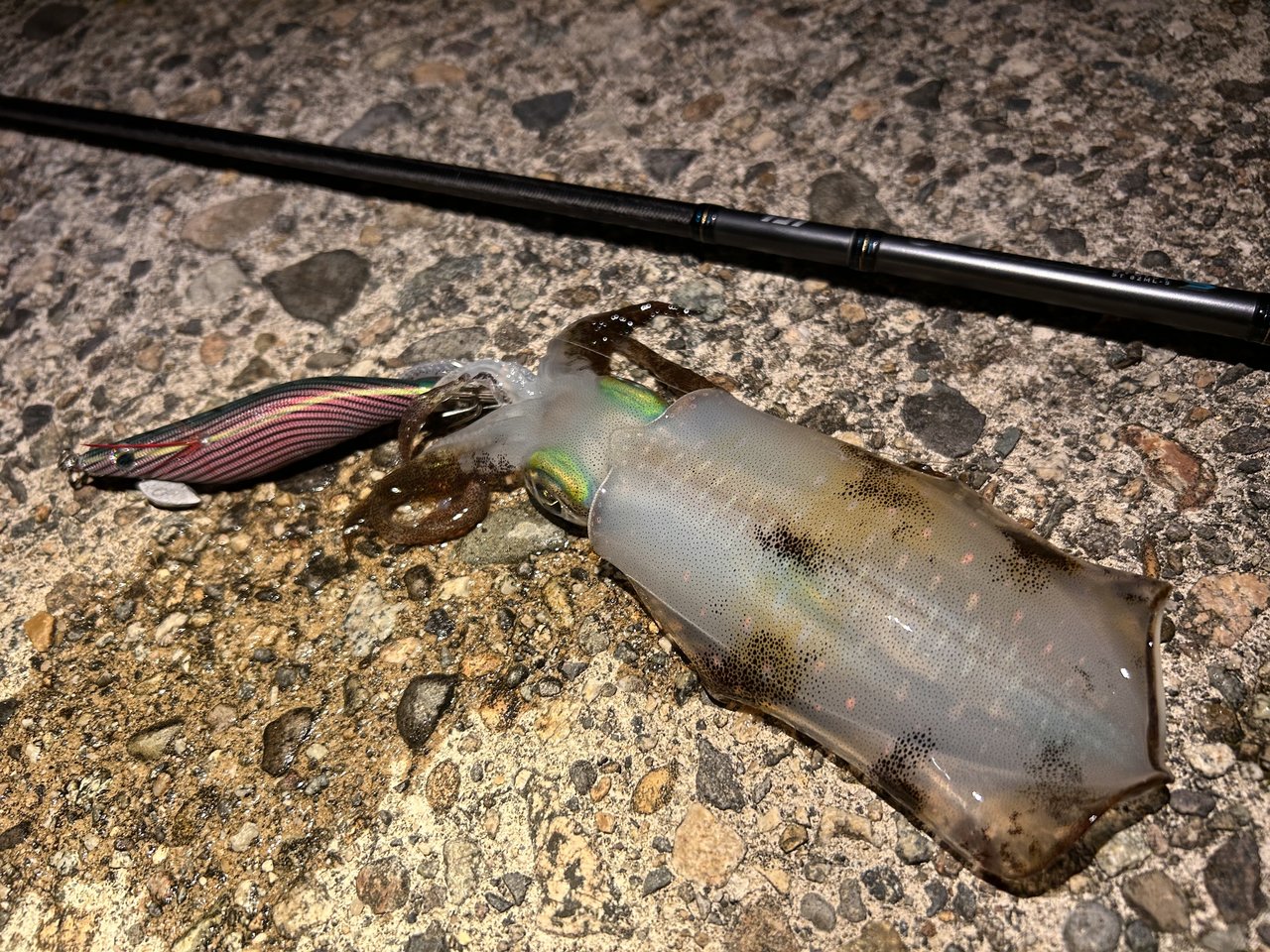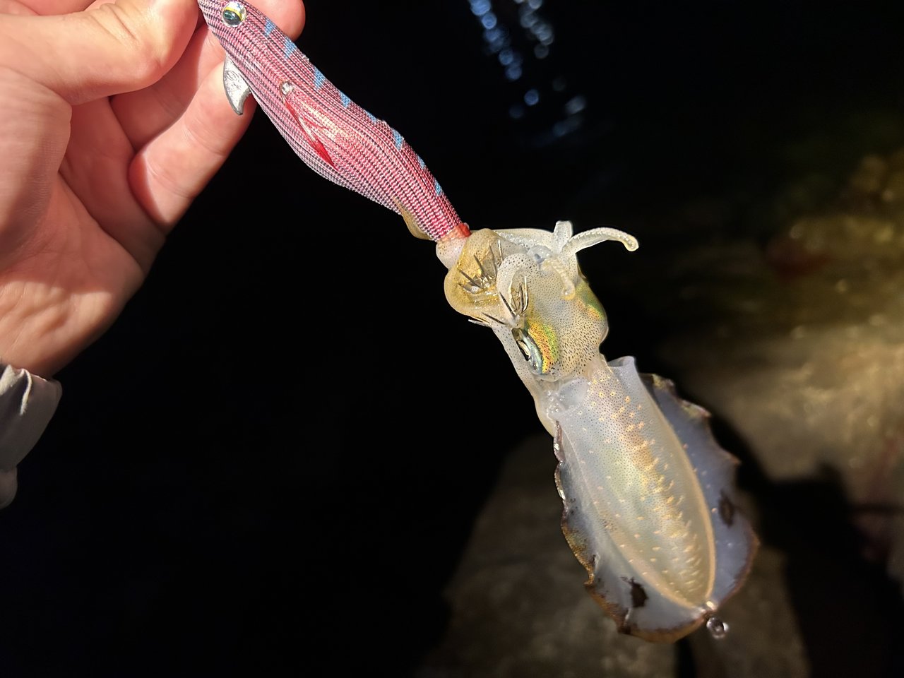 そのエギよりも飛距離が出ていて遠投した先でアオリイカがヒット!!