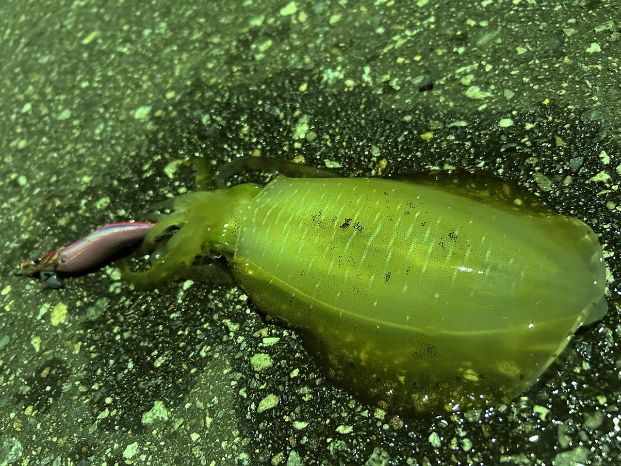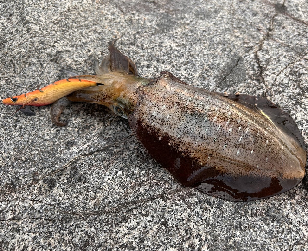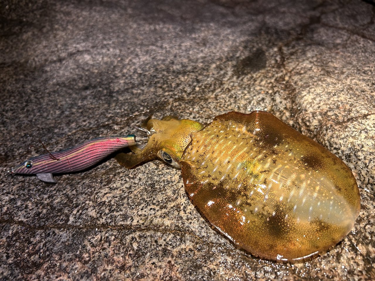 そのエギよりも飛距離が出ていて遠投した先でアオリイカがヒット!!