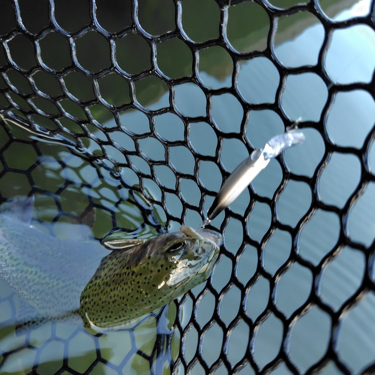 ★ハーブの里フィッシングエリアに午後に2時間券で行ってきました。始めはトップで少し釣ってその後スプーンの巻で釣りますが、ランディング寸前のバラシばかり(泣)