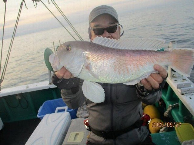 久し振りの船釣り…今回は、近年盛り上がりを見せている駿河湾内でのシロアマダイ。お世話になった船宿さんは、相良坂井平田港第二福徳丸さん。当日朝一は、船中で苦戦。実釣開始から1時間ほどたったころ、自分の竿に心地よいアタリと重量感が伝わってきます。ようやく手にしたのは、中型サイズの本命シロアマダイ。その後同じパターンで同サイズを追加するも、ポイント移動もあり又迷走…。朝の2匹以降船中では、ポツポツ釣れているシロアマも自分には、配当なく終盤戦。残り30分ほどになった頃、アタリが出るパターンをみつけ、最後までそれを繰り返し、最大40㎝を含め5匹のシロアマダイを追加。終日苦戦したシロアマダイ狙いも後半のラッシュですっきりしました。船長ならびに同船者の皆様、ありがとうございました。