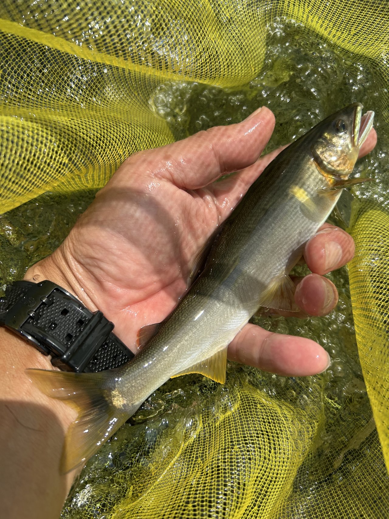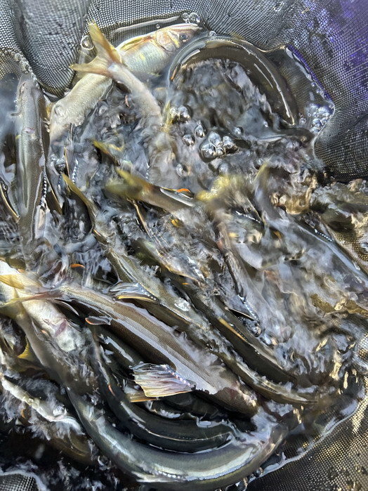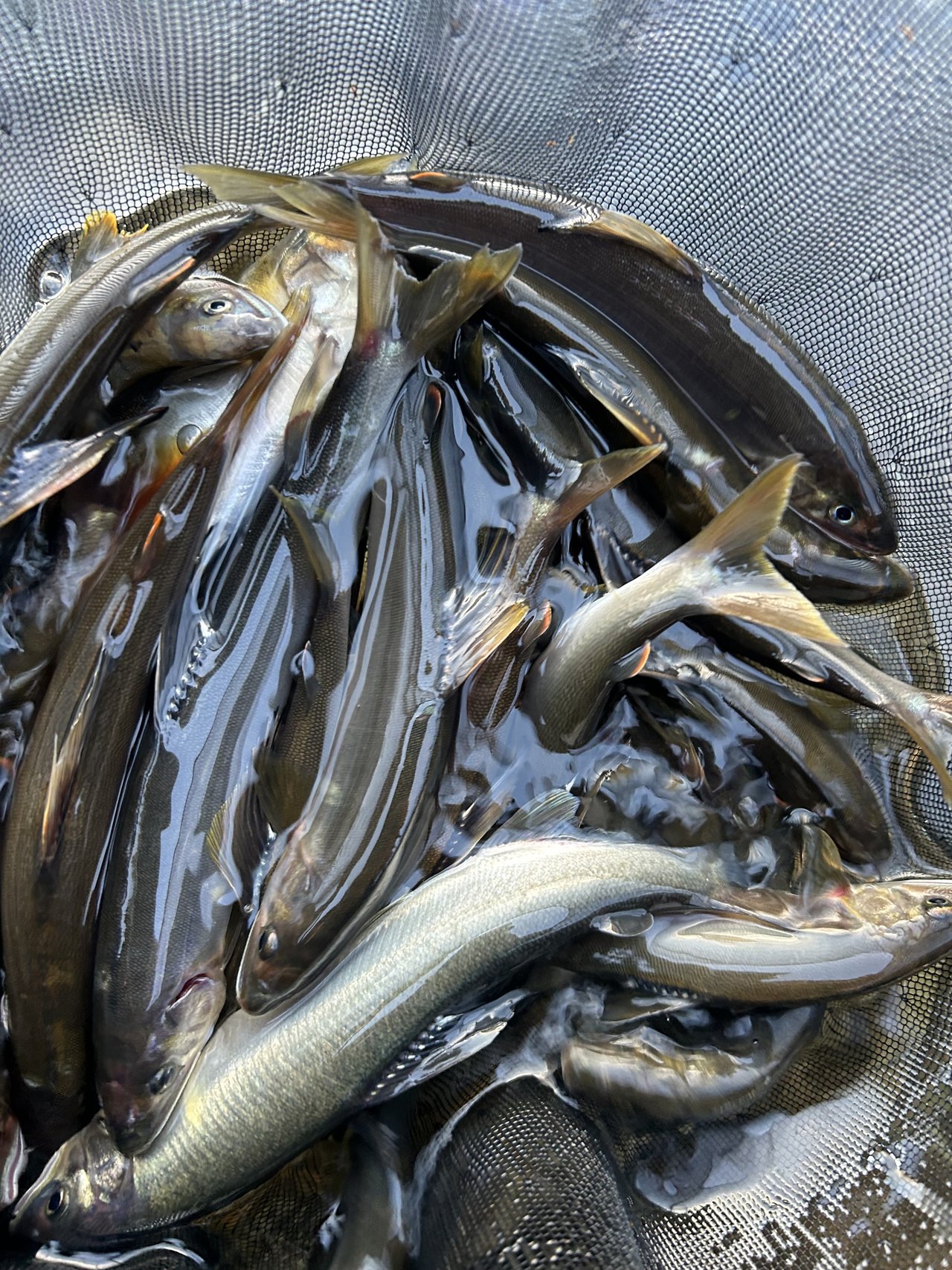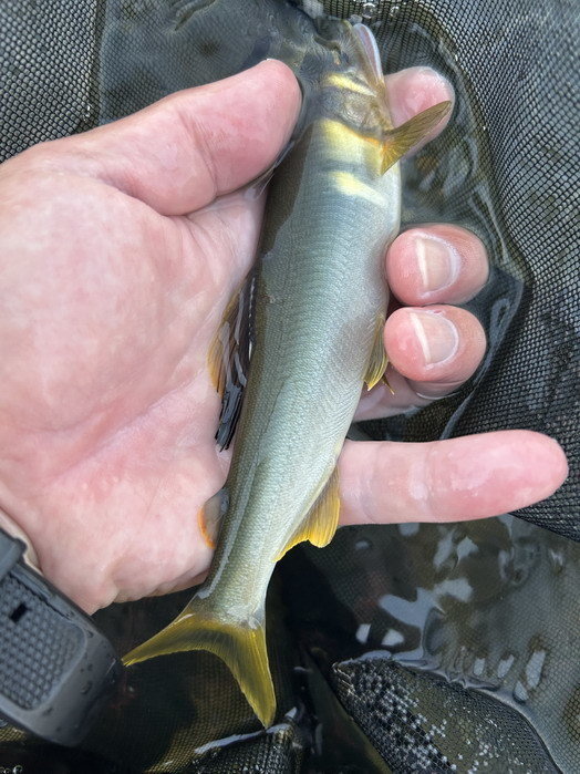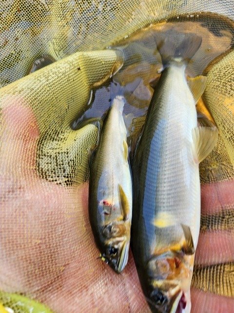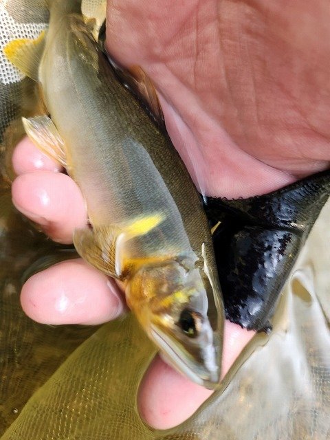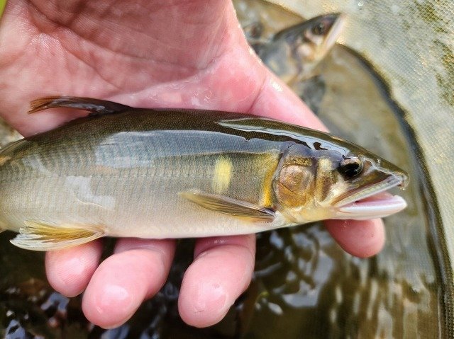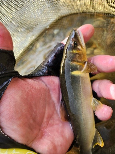 真夜中より朝方まで雨、止んできたので昼前から修行中の鮎釣り!約10cm高の水位、同じ思いの釣り人多数!ポイント探しながら直ぐに掛かるもオトリになる?サイズ3連発・・移動し探ると良型混じるも続かずポイント移動しながら追加・・トラブルもポロリとスルー多発。修行続行中!それでも楽しい釣行となりました!反応してくれた魚達に感謝です。