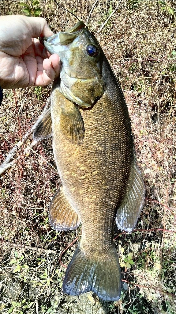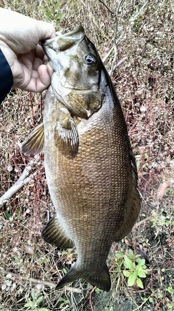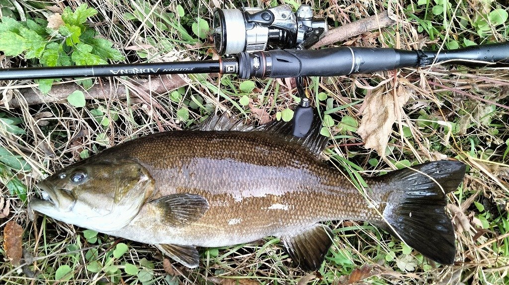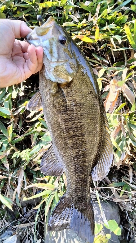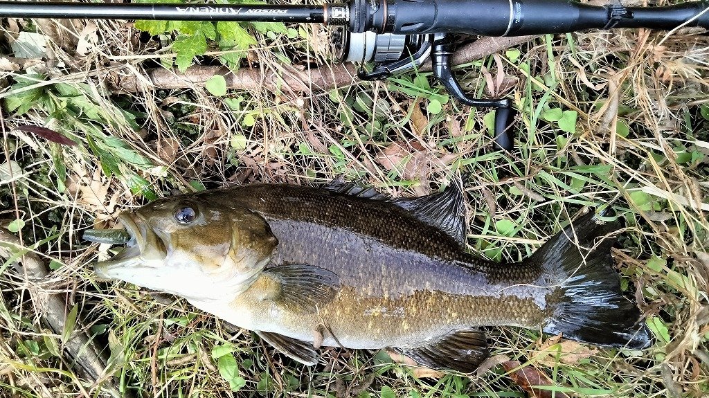 朝の短時間釣行です。最初に流れの強いポイントに入りますが反応がなく、増水で水深が深くなったポイントに移動します。ヴァラップスイマー3.3を巻いているといいバイトがあり35cmが釣れました。その後色々やりますが反応がなく、ドロップショットミノーのダウンショットに変更。ショートバイトと戦いつつ43cmと41cmを釣りました。その後は強風のため帰宅です。水温急低下でだいぶ活性が低くなってきました。