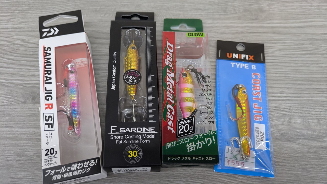 フォール中にアタリがあるのでスローフォール系、小型のメタルジグがオススメです。