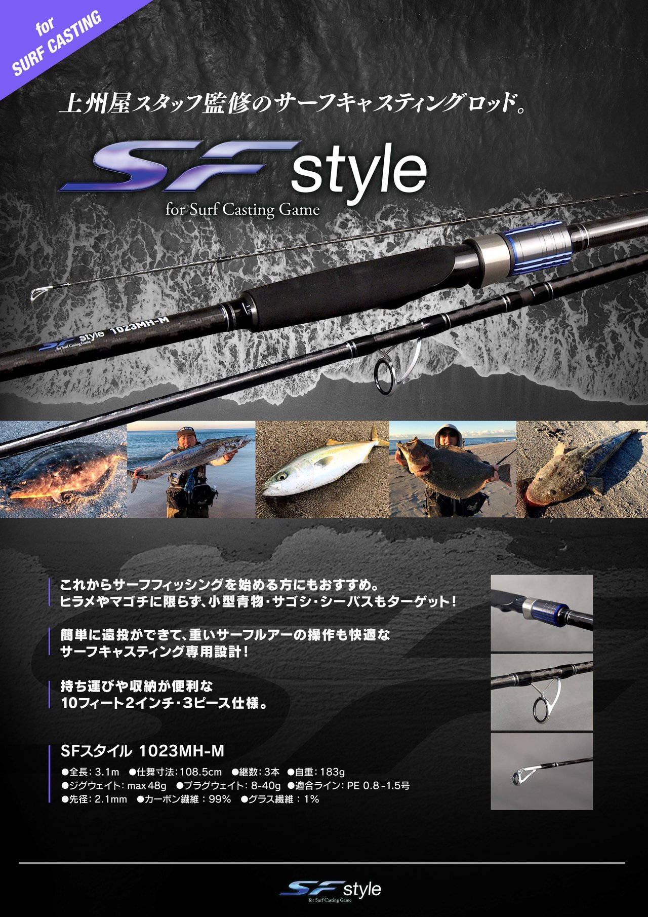 始めての人でも扱いやすい、本格的にサーフフィッシングを始めてみたという方に長く使っていただける最初の1本にとってもオススメなロッドとなっております!