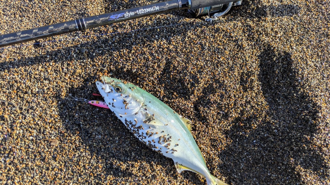 先月買ったNEWタックルを曲げるべくメタルジグを投げ続けるも釣れず...周りではワカシがポツポツ釣れており回遊はしている様子でした。