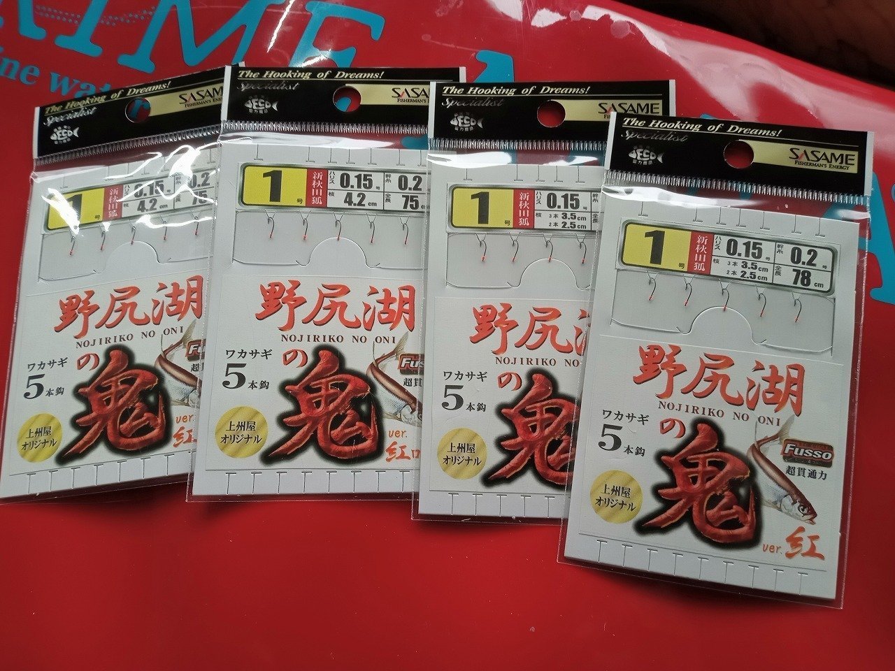 この日は新製品のSASAME「野尻湖の鬼」仕掛けを使用。柔らかいナイロンハリス仕様がこの仕掛けの特徴。他の仕掛けも使いましたが、やっぱりこの仕掛けが一番よく釣れました。また、誘わなくてもアタリが出やすくておすすめです!