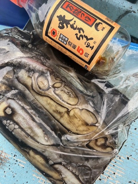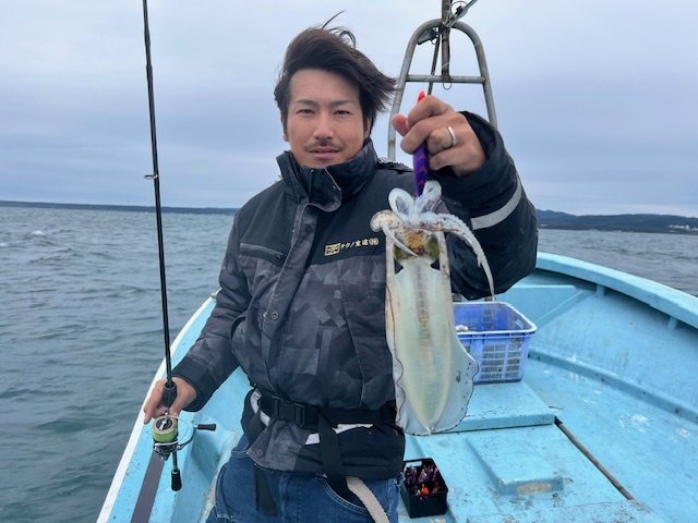 日替わりで状況が変動するここ数日の男鹿沖の海。この日は朝から天気が良く風は弱めな日でちょっと期待度高めでした。メンバーはいろいろあり4人での乗船となった結果ゆっくり釣りが出来ます。朝イチは20mラインで4連発があり、これは?と思いましたが、その後は前回同様に船全体でアタリが遠のきましす。船長にはあちこち回ってもらいましたが、イカからの反応は薄かったです。水温も安定していないようで、回収したエギは冷たかったり暖かかったりと潮によってバラバラ。結果13杯でフィニッシュ。別の船では29杯釣った人もいるようなので、まだまだイカはいます!このあとの終盤戦も期待できそうです!