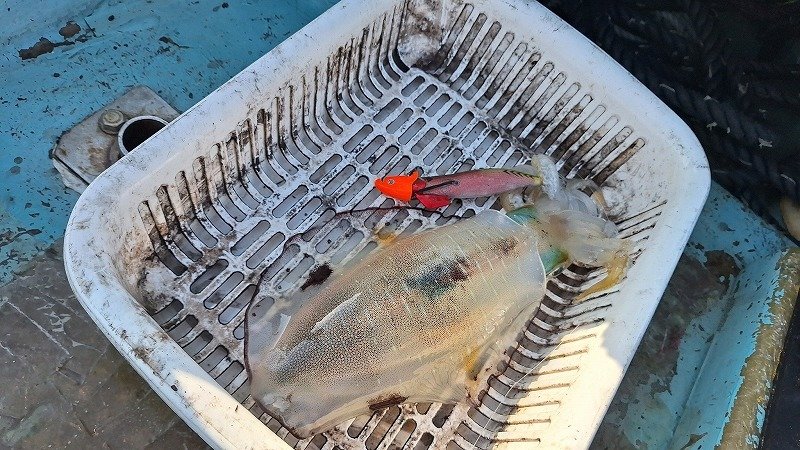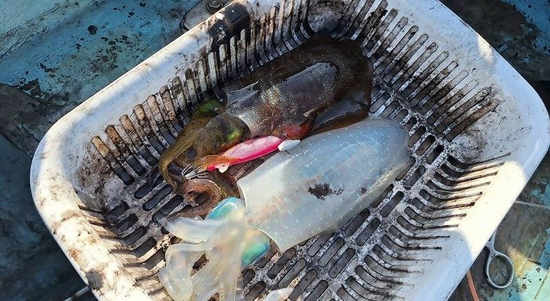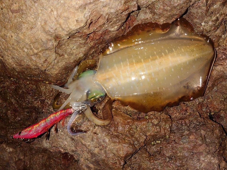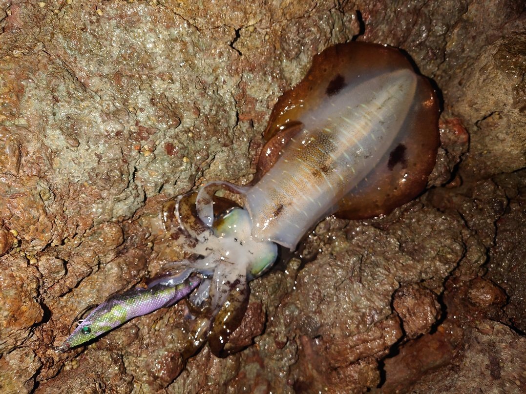 最初はカウント20~30秒を狙いますが1時間反応無し!ポイント選択をミスったか???と思いましたが、思い切ってカウント60秒で根掛かりにビビりながら狙ってみるとコレが大正解!順調にアオリイカが釣れ出します!