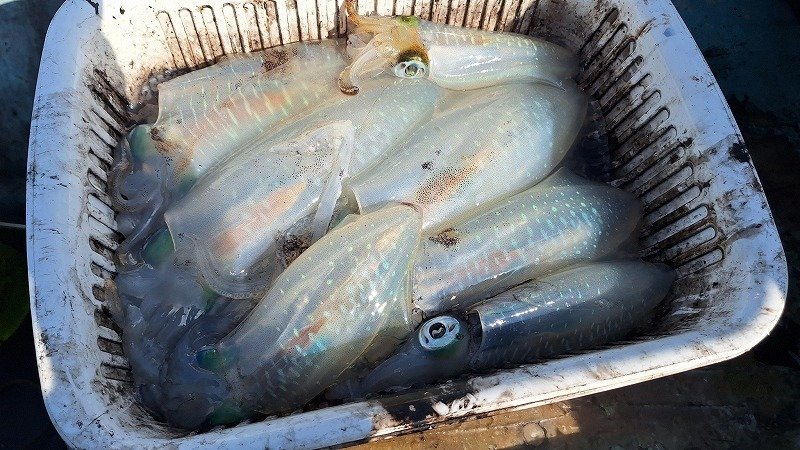 寄ってきたアオリイカは胴長20㎝は越しているかな?っていうサイズだったのでブッコ抜き!時刻は2時24分。これから連発か?!と期待しましたがこれっきり。明るくなった6時に終了となりました。
