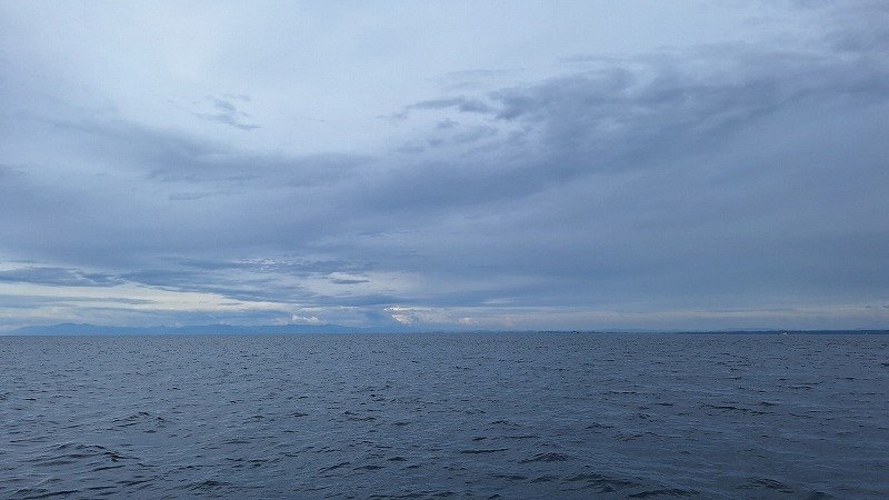 天気予報では晴れマークで月が煌々と海面を照らしてくれるハズでしたが、実際は曇り空で僅かに明るい程度です。(天気予報の嘘つき!)