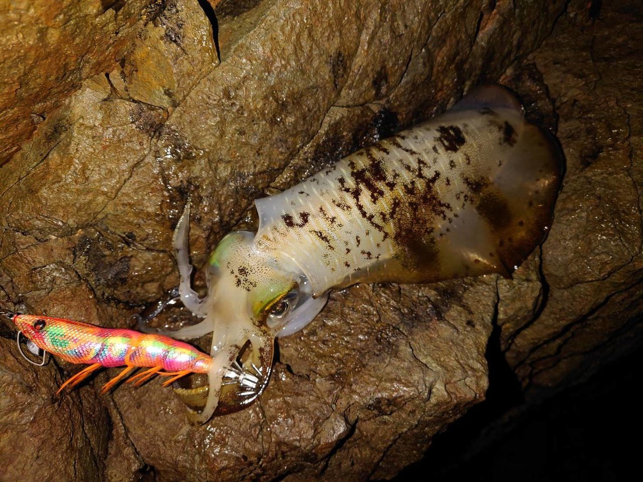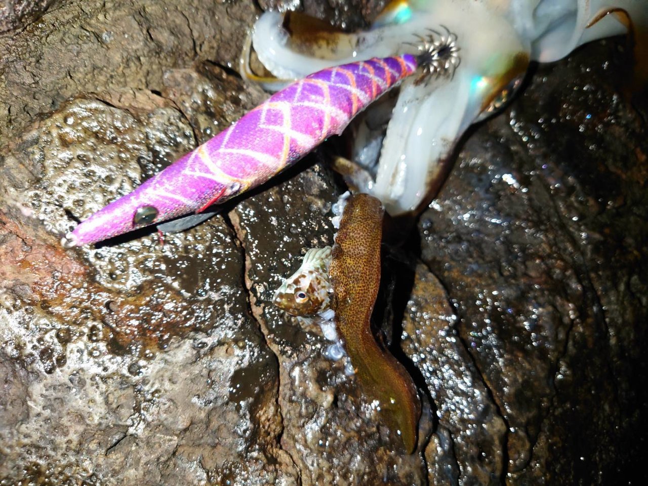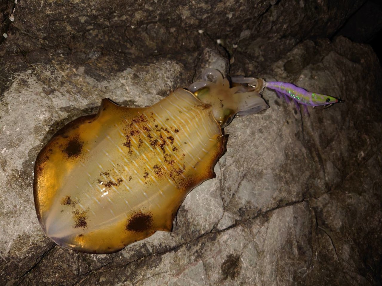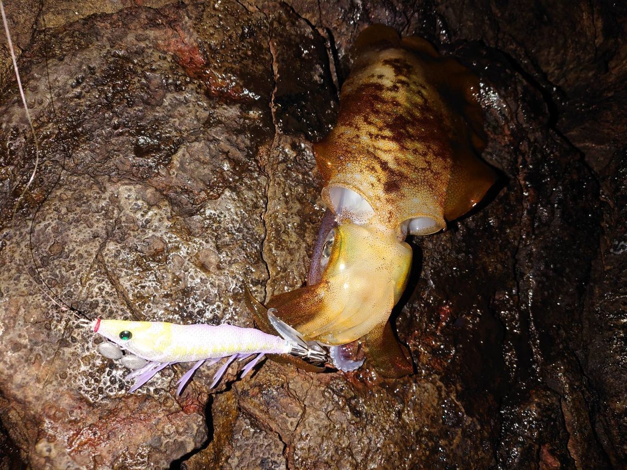 最初はカウント20~30秒を狙いますが1時間反応無し!ポイント選択をミスったか???と思いましたが、思い切ってカウント60秒で根掛かりにビビりながら狙ってみるとコレが大正解!順調にアオリイカが釣れ出します!