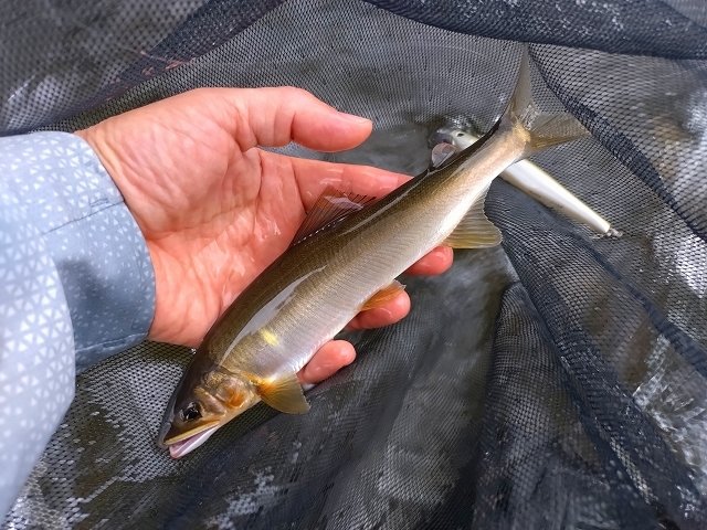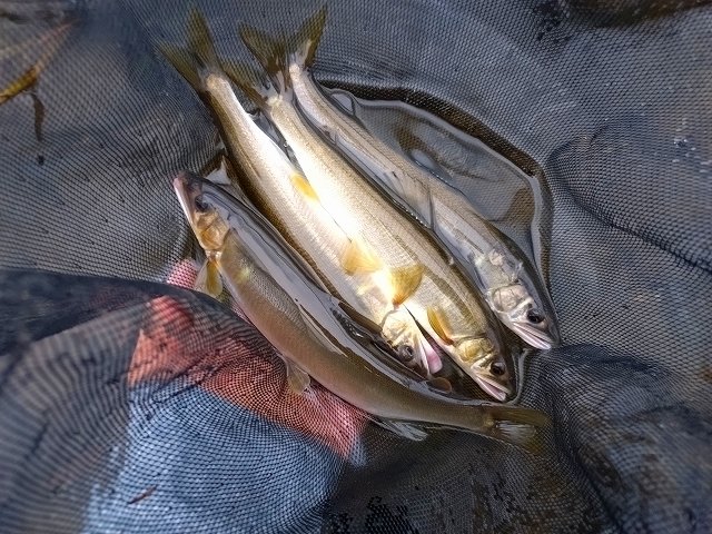 シーズン終盤に入った狩野川本流へ鮎ルアーに行って来ました。最上流部の神島橋下流へ。夕方3時にスタートすると鮎の跳ねが沢山!探っていると針に鱗が付いてきました。すぐに針を交換すると強いアタリで1匹目。以前に比べ強い引き!サイズは手尺で23cm程の良型です。次のキャストでも即掛かり!でしたがこちらは針ハズレ?身切れ?でバラシ。その後もアタリが続いて4時過ぎまでに4匹キャッチ。大型は出ませんが23cmサイズが揃いました。真夏は釣果が落ち込んでしまった鮎ルアー区間ですが狩野川の真価はこれから!コロガシも網も禁止の狩野川は友釣り・鮎ルアーが10月以降も楽しめます。産卵に向け落ち出すと、この場所は魚影もさらに濃くなり好釣果に期待!