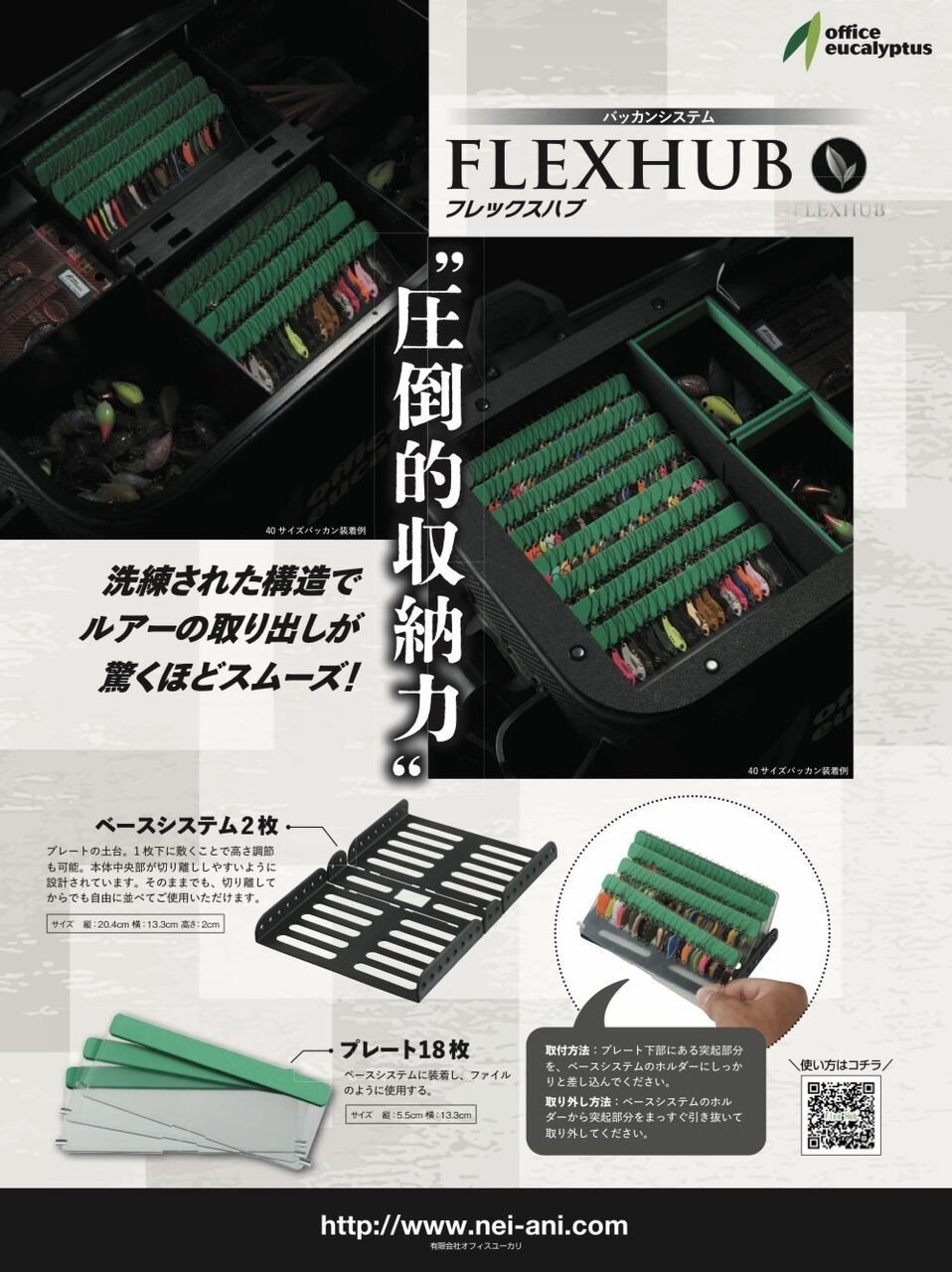 今年のエリアトラウトシーズンに向けてオフィスユーカリさんのバッカンシステム「FlexHUB(フレックスハブ)」を導入してみましたが、ルアーチェンジがしやすく快適に釣りが出来る様になりました。ベースの長さをアレンジできますので様々なバッカンやボックスに対応出来るのでオススメですよ!