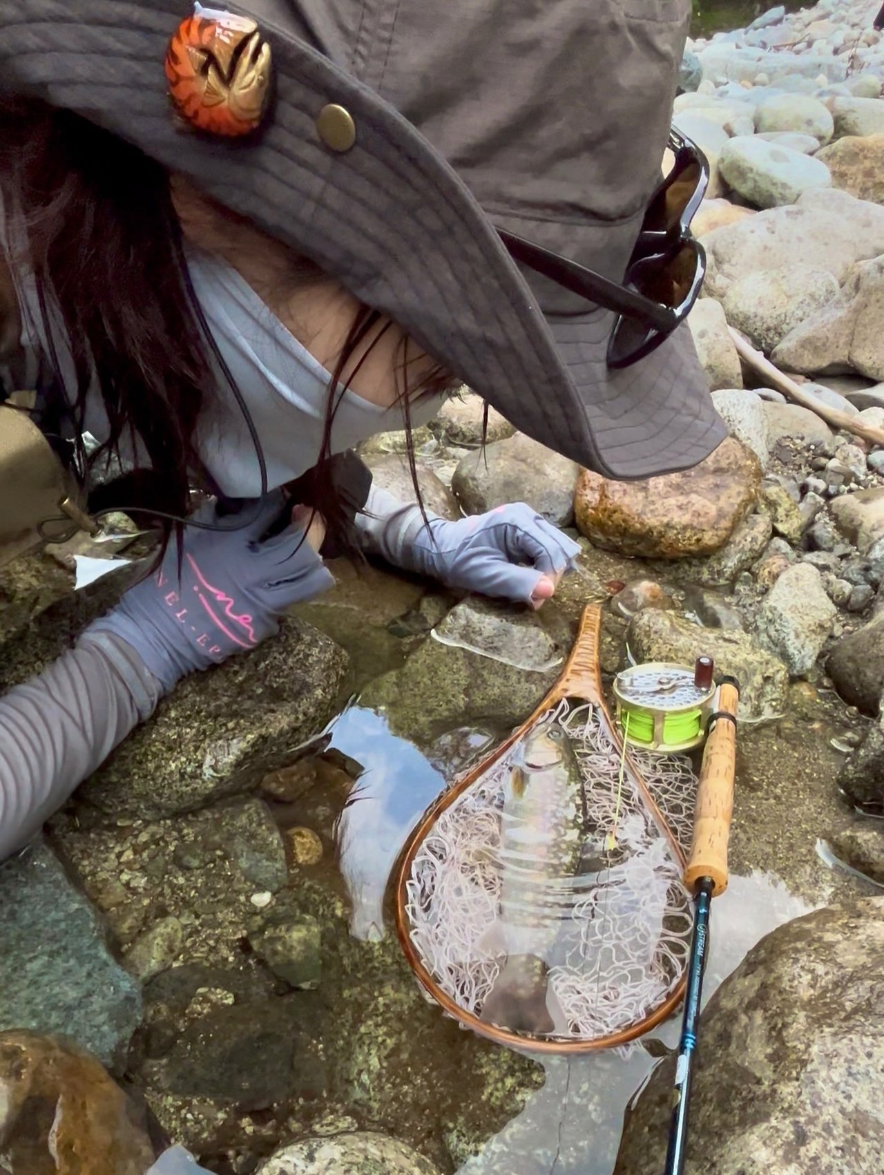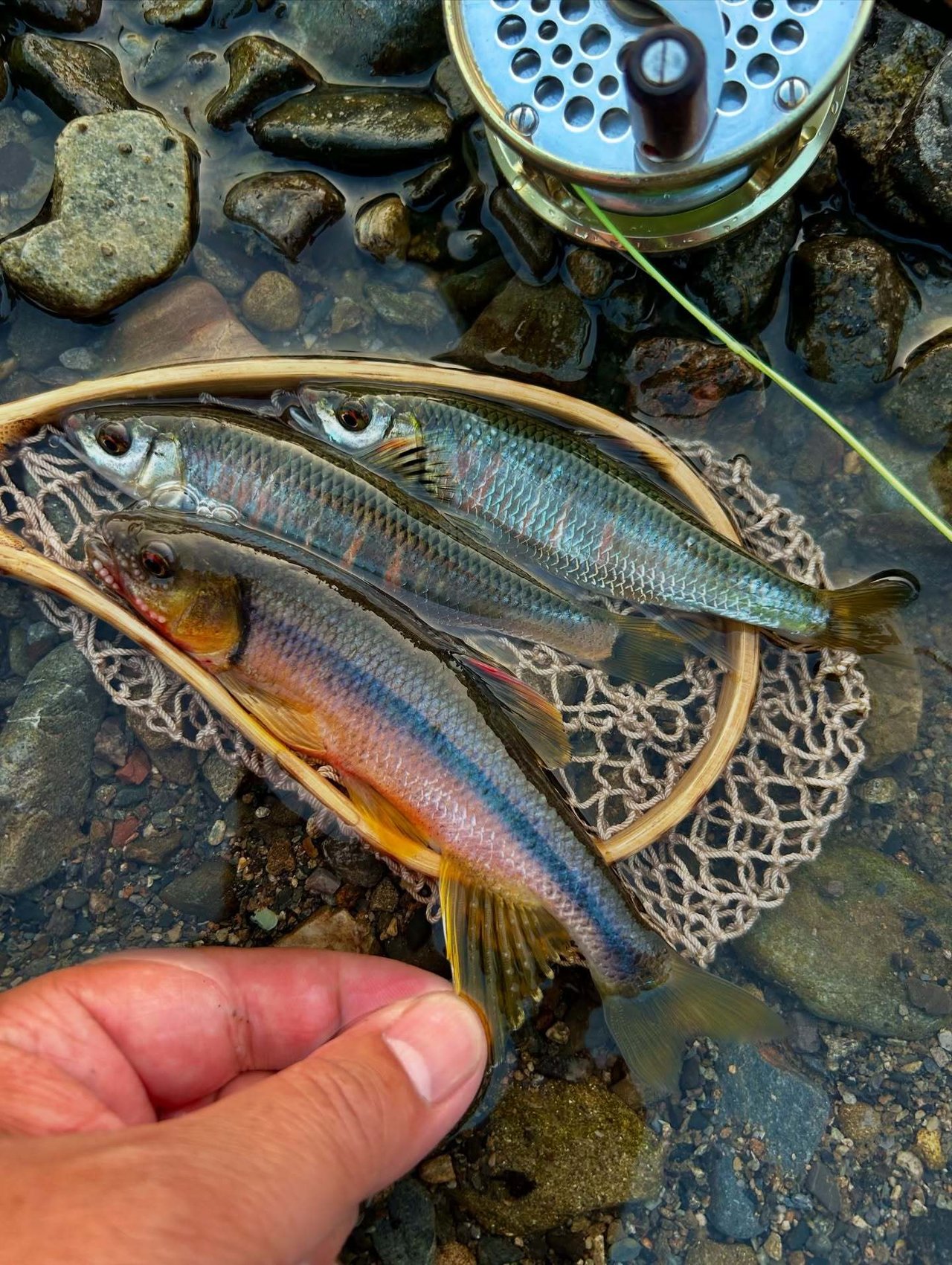 ヒットすると水量と流速も加わり、3番ロッドを余裕で曲げる程のかなり強烈な引きを味わう事ができます。フライサイズを小さくすると小型ばかりフッキングしてしまうので、18番・16番を使い良型を選んで釣る事ができましたよ。