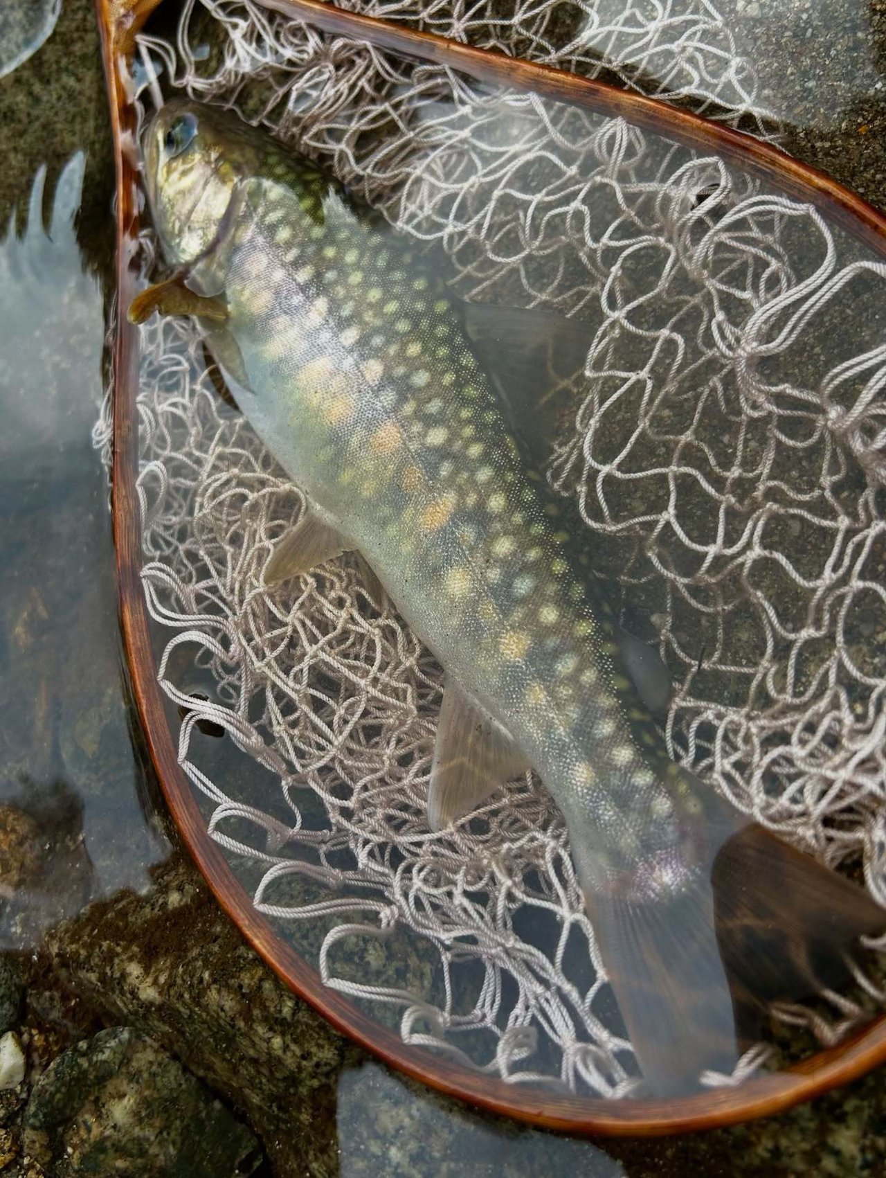 釣り場はここ最近釣り人の数が多く、イワナのプレッシャーが高まっているようです。いわゆる「おおらか」なイワナ釣りではなく、フライへのアタックスピードが速い傾向です。