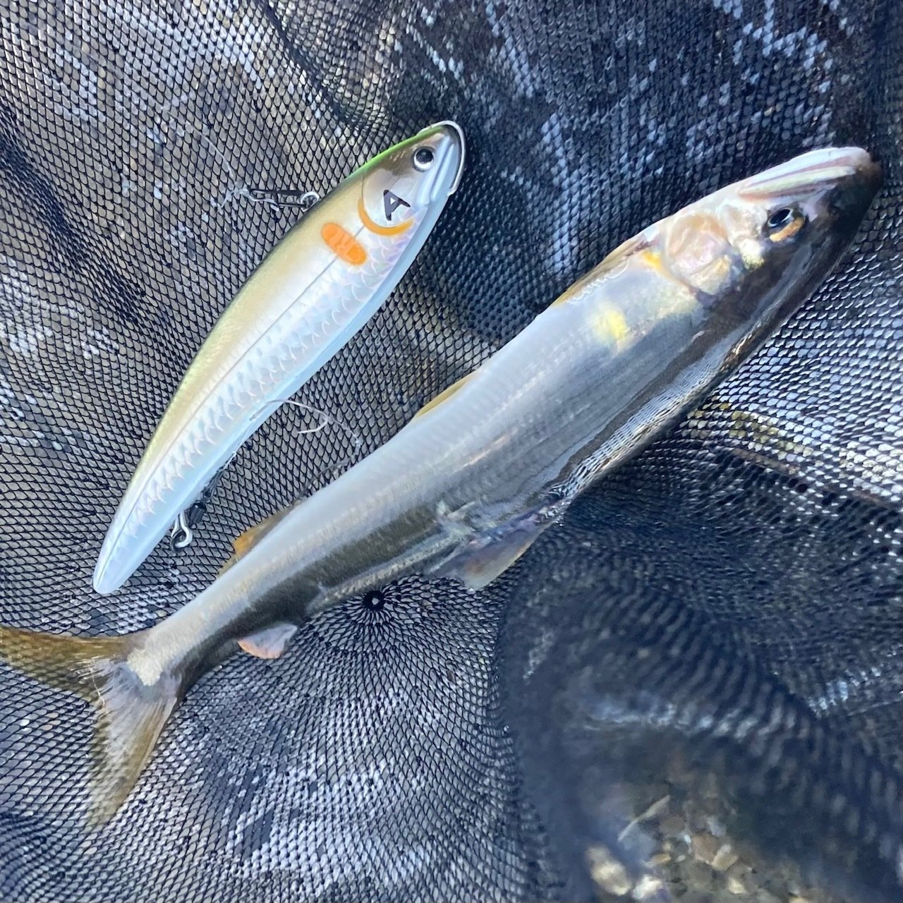 暑すぎるので夕涼みに牧田川アユルアーに!ひと雨欲しい渇水状況ですので、石の入ったヘチを静かに探ると綺麗なアユが反応してくれました!ヒットルアーは、パームスエスケードバイブT1当店オリジナルカラー『ライブパールアユver.2』←いい仕事しますよ!深場用と思われがちなバイブレーションタイプですが、ロッドを高く上げて浅場をフワフワコントロールすると良い反応があります!ぜひお試しください!直ぐに2匹釣れたので、活きの良い鮎を食卓にあげるべく直ぐに帰宅!この手軽さこそアユルアーの魅力の一つ!皆様もぜひ!