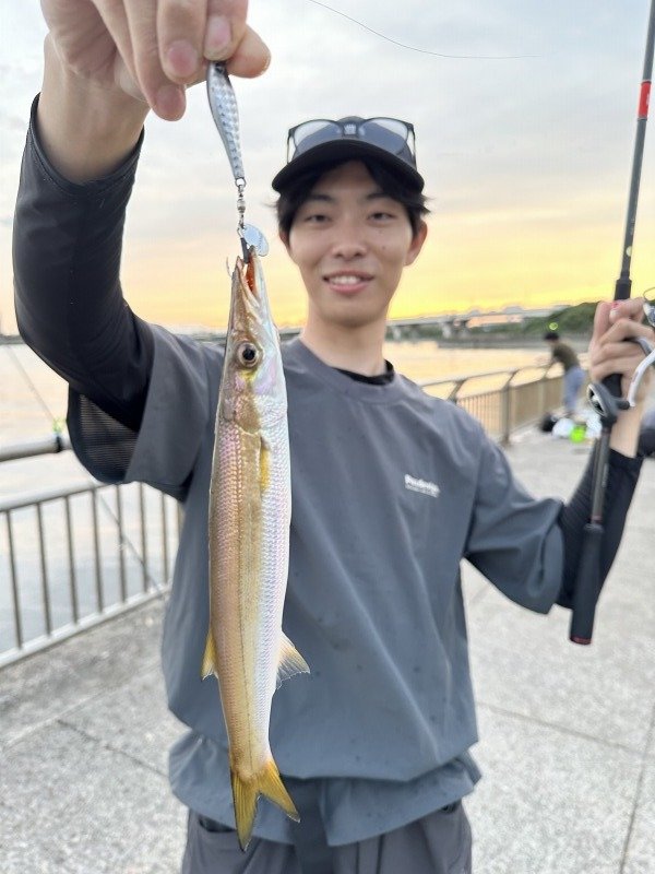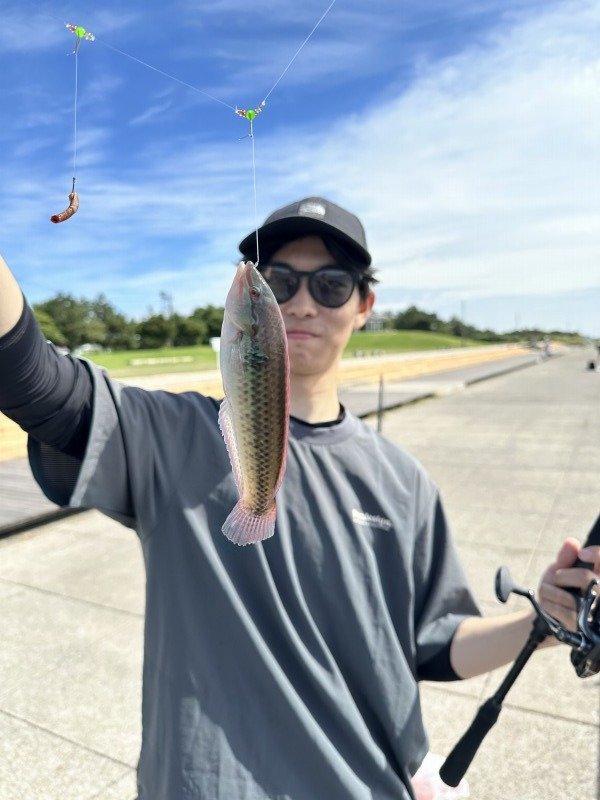 東扇島西公園でにぎってポン! 胴突仕掛縛りで何が釣れるの? スタッフTAOと店長で調査してきました(^^)/ 付け餌は青イソメとオレンジゴールド。 撒き餌はヒロキュー「にぎってポン」 開始早々からベラが入れ喰い状態。 潮止まりから暫くはアタリが減ったものの、上げ潮のタイミングで徐々に魚信増加! お次はアイゴ!近郊堤防ではアイゴの釣果が急激に増えていますね。 アイゴは鰭の棘に毒を持っているので要注意です('◇')ゞ 魚バサミなどを使って針を外してくださいね。 続けて釣れたのはカサゴ!小さいサイズでしたが、胴突仕掛で狙うド定番魚! カサゴは裏切りません! セイゴも釣れました!仕掛回収のタイミングに表層でヒット! これで4魚種達成(^^♪ 日が暮れ始めた頃に、ヘチ際でヒットしたのはメジナ! 20cm程の木っ端メジナでしたが、ライトロッドを使用していたので引味は抜群! 短時間釣行でしたが、これで五目達成! しかしこれだけでは終わりません! 日が沈む間近になると、表層でナブラ発生! ブレードルアーへチェンジしてキャスト。 カマスキャッチ(^^)/ しかしナブラは直ぐに終了してしまいました… トータルで6魚種達成! 秋の堤防釣りはイロイロ狙えるのが魅力的。 皆様もいかがですか(*^^*) 釣行の準備はぜひ上州屋川崎東口店で! photo&writer:店長