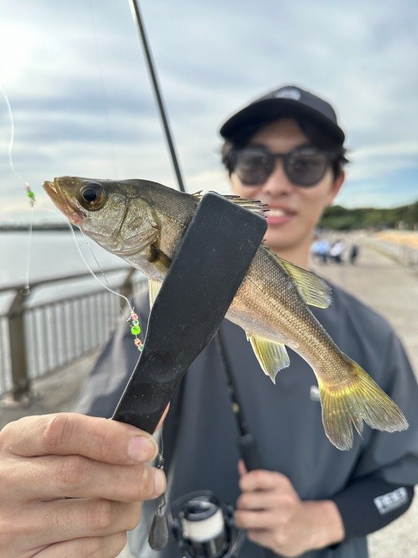 セイゴも釣れました!仕掛回収のタイミングに表層でヒット!