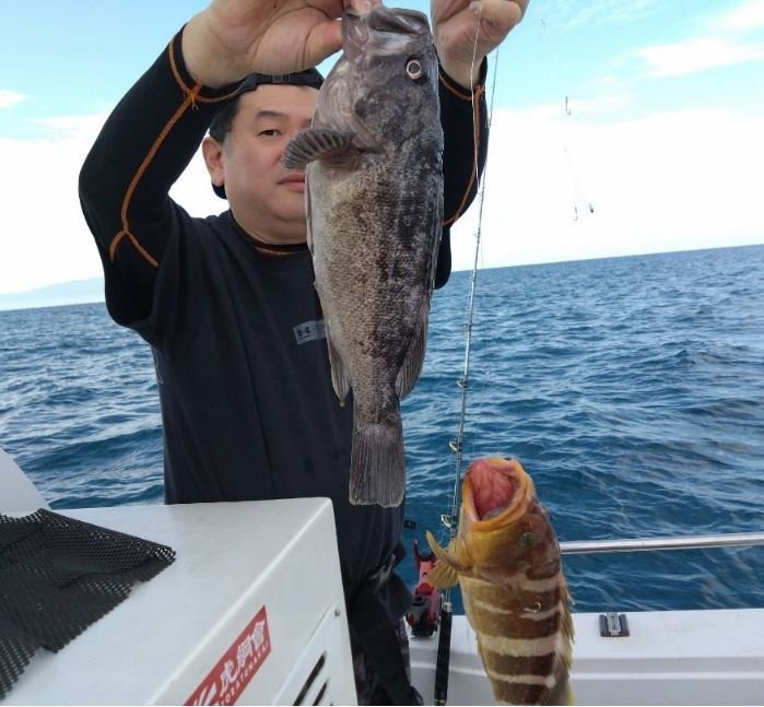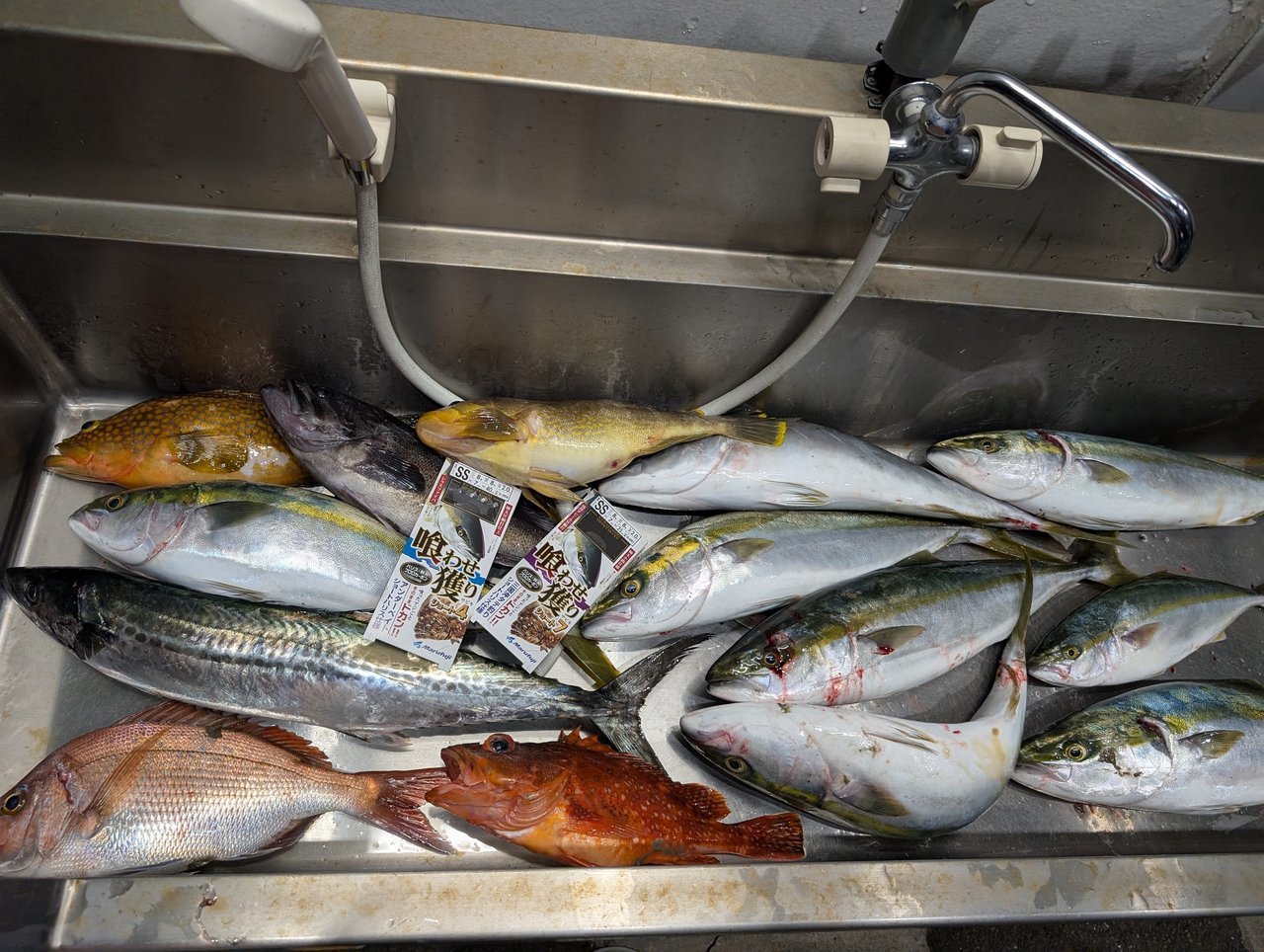 数日前にヒラメを結構上げていたので、本命はヒラメです。第一投目からイワシが付き、黒ソイとアオハタのダブルと幸先良い感じも、ハマチが多いのかおまつりが多発。釣りが中断するので、針数を落とすことも対処法だと思われます。青物を避け南に下るもベイトがベタ底で付く難しいパターンでしたが、乗船者お上手でしっかりベイトを乗せ、ヒラメの大型(船中3枚60CM前後)やヒラマサをゲットされていました。私はハマチに粘着され青物祭りな一日でした。ベイトはイワシが毎投乗る状況ですので、針は大きめでも問題ありません。