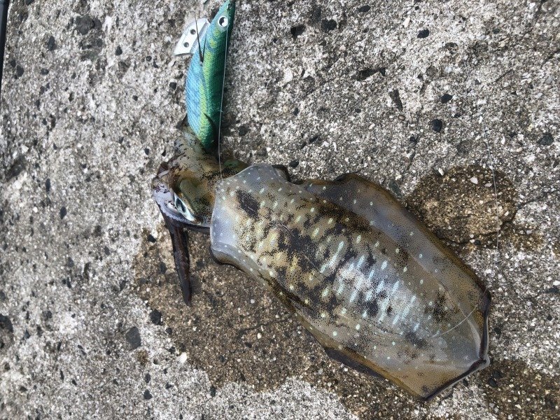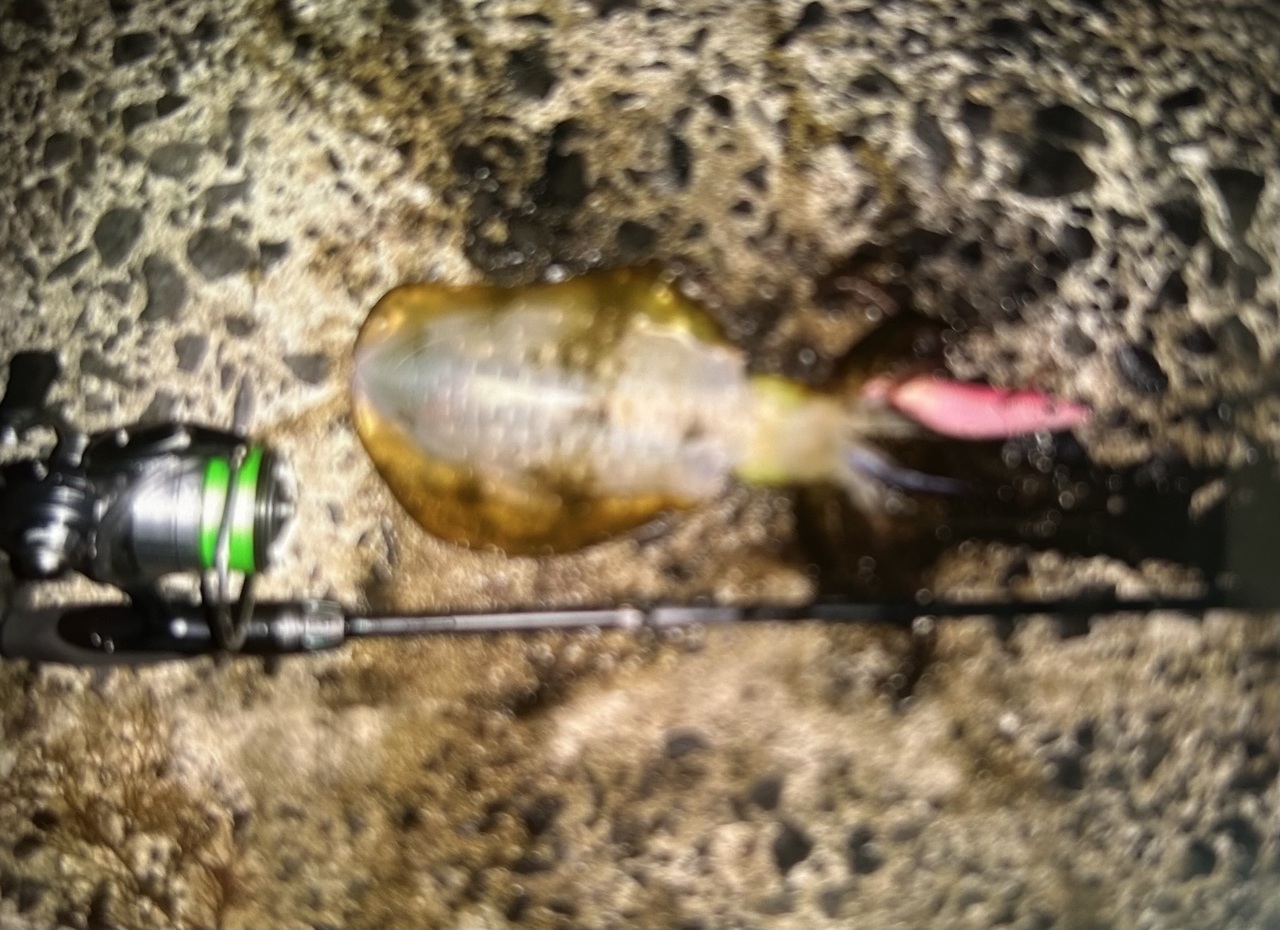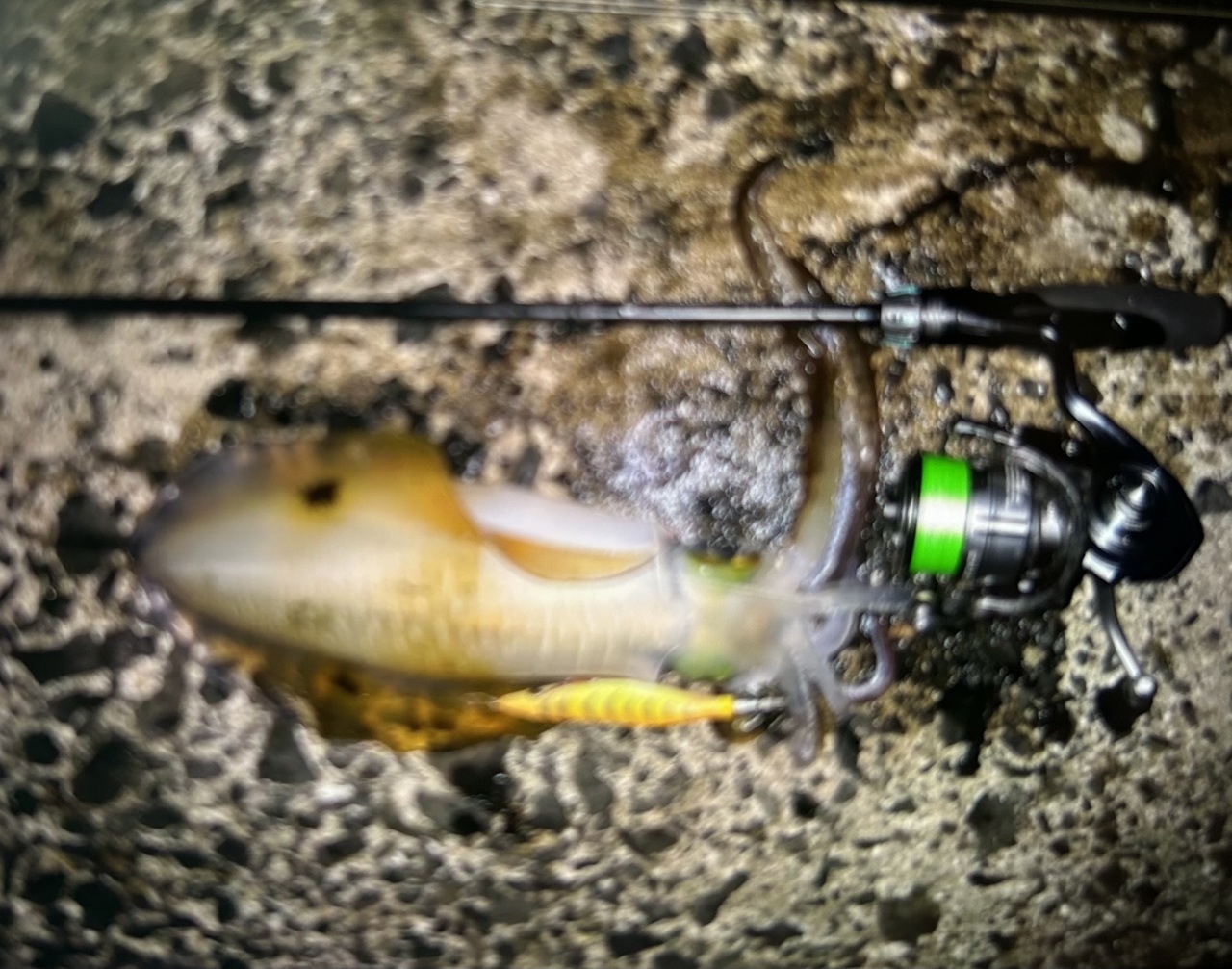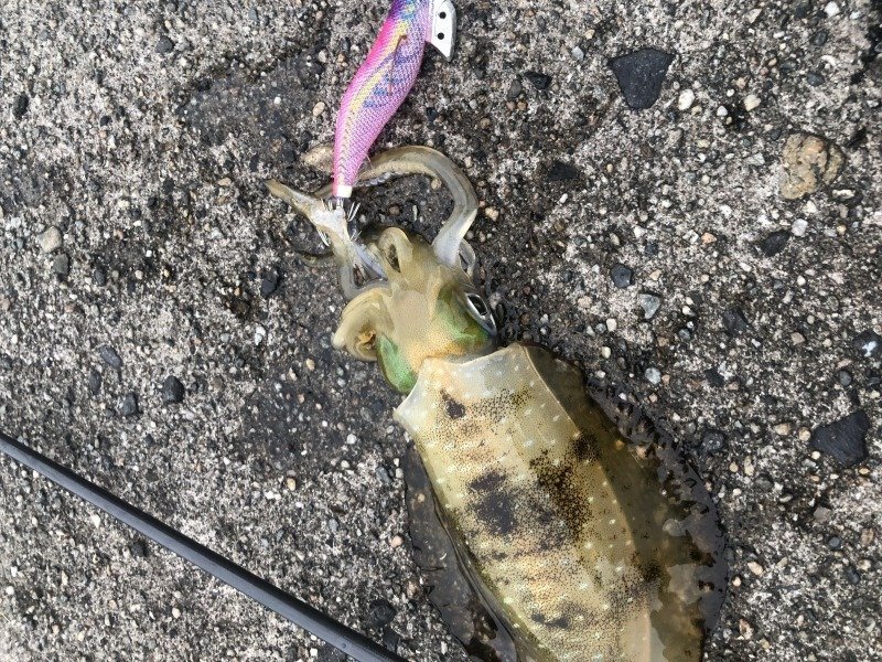 30~40g程のエギを着底させて、シャクってステイさせるとふわっと竿先が上がったり沈んだり震えたり、せわしなくアタリが続きました!