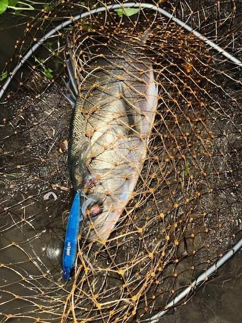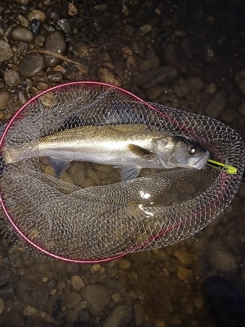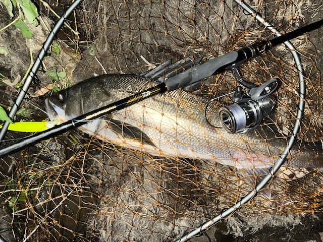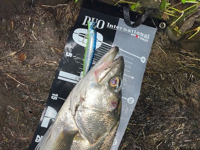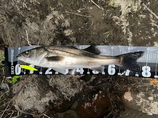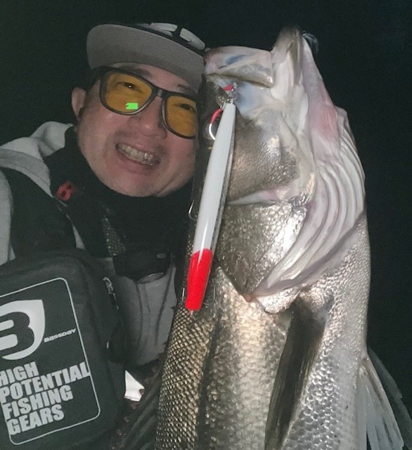 新福井店から車で約10分の九頭竜川水系へシーバス狙いに行って来ました。今回の目標は前回2度バラシているかっ飛び棒で釣る事!テールフックをシングルに変えて正解!2本目はハーデスにランカー手前がヒット!