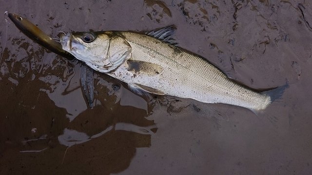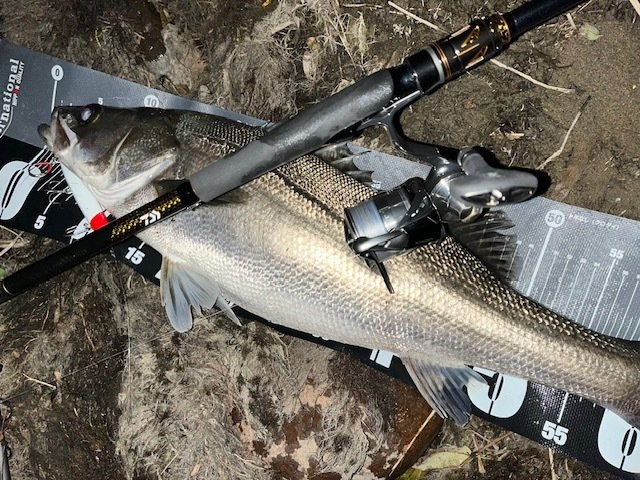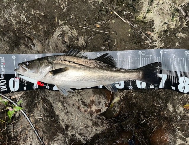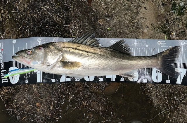 次はレッドペッパーにヒット!35cmのシーバスでした。