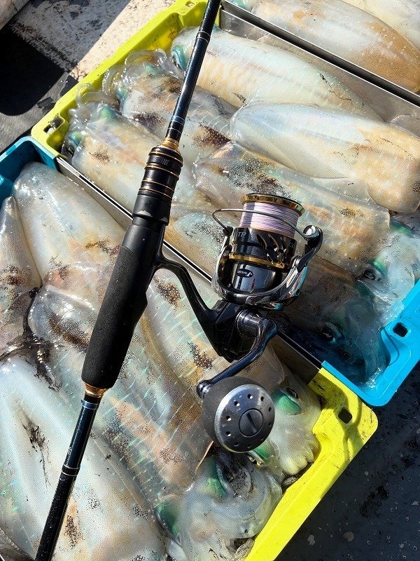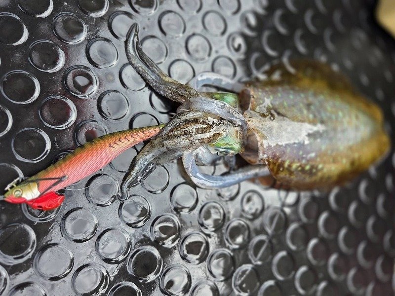 手感度と穂先の違和感のような変化を合わせたとき空振りするも、すぐさま明確なイカのアタリがきて、すかさず合わせるとずっしりとしたイカの重さとグイングイン引っ張る引き込みがたまらなく嬉しい瞬間。(フォール中、勝手にかかったパターンもあったことは秘密)